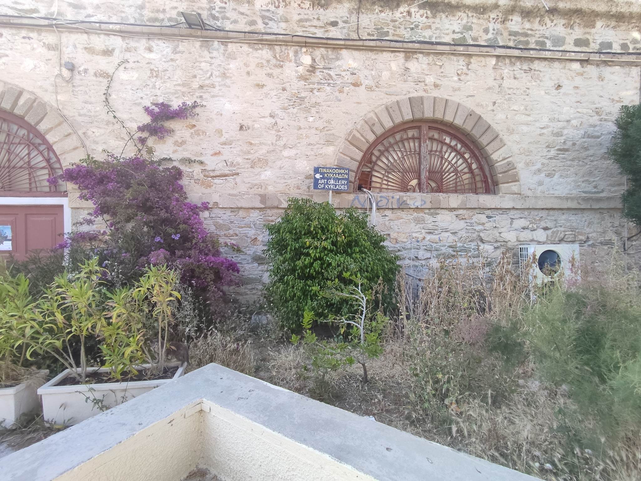 Εικόνα που δεν αρμόζει στον περιβάλλοντα χώρο κτηρίου που φιλοξενεί εικαστικές εκθέσεις, παρουσιάζει η Πινακοθήκη Κυκλάδων και η είσοδός της, αφού όπως διαπιστώνεται από το φωτογραφικό υλικό δεν έχουν γίνει αποψιλώσεις των ξερών χόρτων.