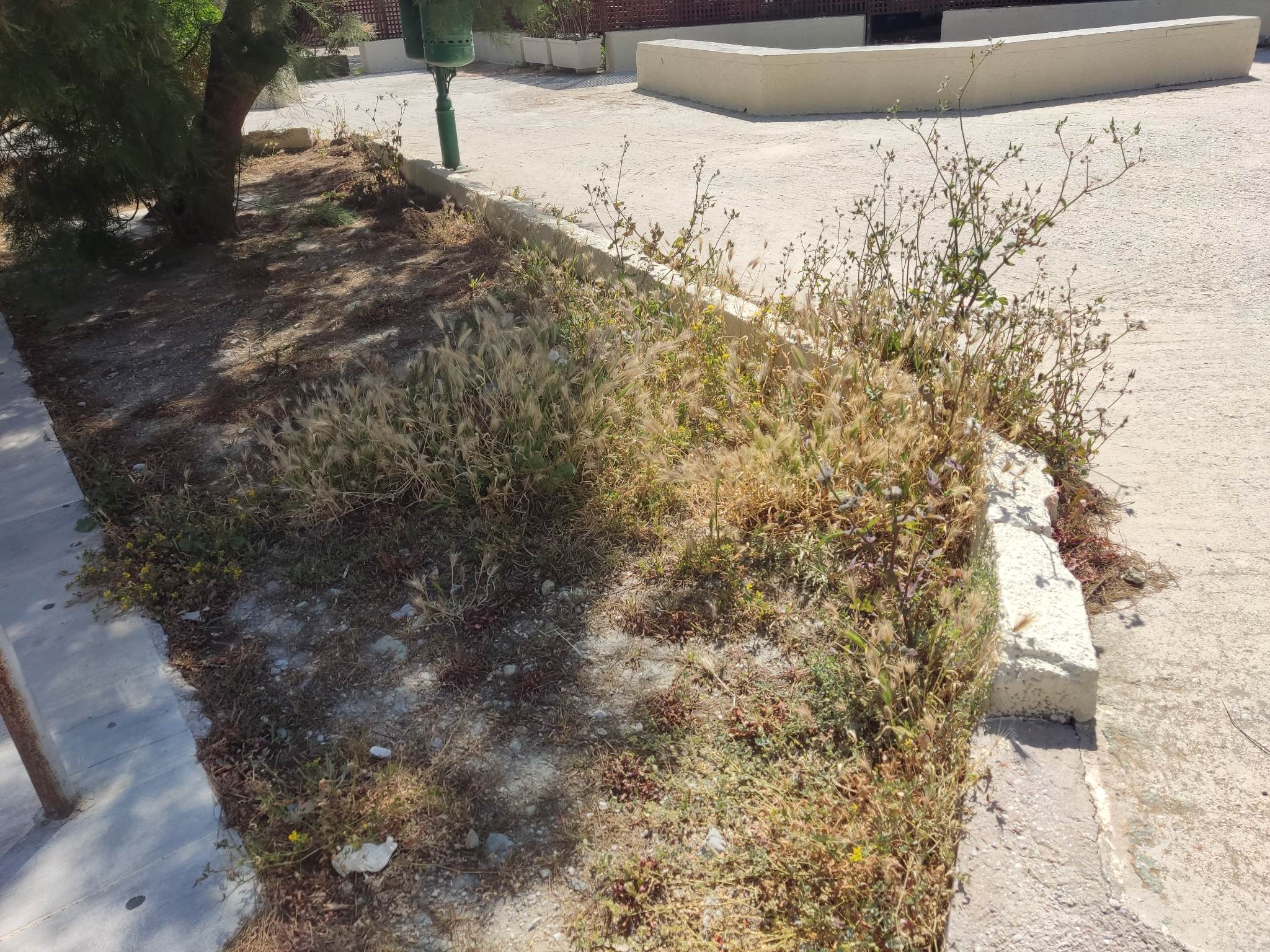 Ειδικότερα, τα παρτέρια και τα τμήματα ακριβώς δίπλα από την πόρτα εισόδου του χώρου, δείχνουν “πλημμυρισμένα” από χόρτα, τα οποία πρέπει να απομακρυνθούν, δεδομένης πλέον της αντιπυρικής περιόδου και της πρόληψης που πρέπει να υπάρξει για την αποφυγή πρόκλησης πυρκαγιάς.