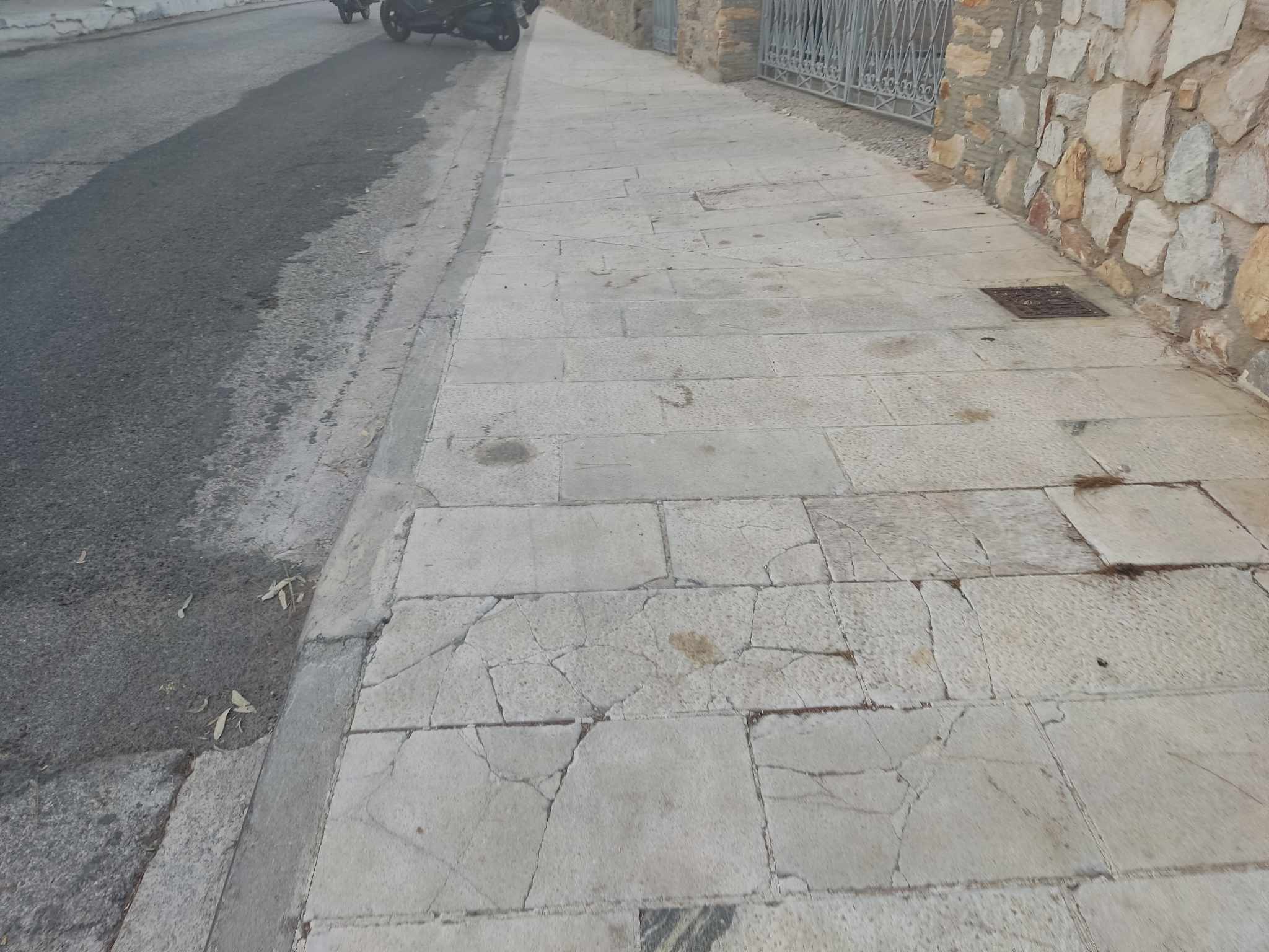 Παράλληλα, ορισμένες πλάκες στα πεζοδρόμια έχουν “σπάσει”, καθιστώντας το βάδισμα των πεζών δύσκολο, ενώ η μία ράμπα για διέλευση ΑΜΕΑ με αναπηρικά αμαξίδια μοιάζει να έχει υψομετρική διαφορά από το πεζοδρόμιο.
