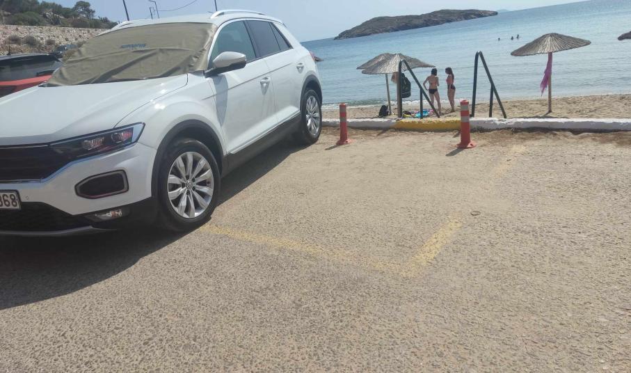 Παράλληλα, διαγραμμίσεις για ασφαλή στάθμευση και στάθμευση με τάξη, δεν έχουν γίνει στο τμήμα της παραλίας που αφήνονται τα οχήματα, ενώ και η θέση ΑΜΕΑ έχει σχεδόν πλήρως αποχρωματιστεί.