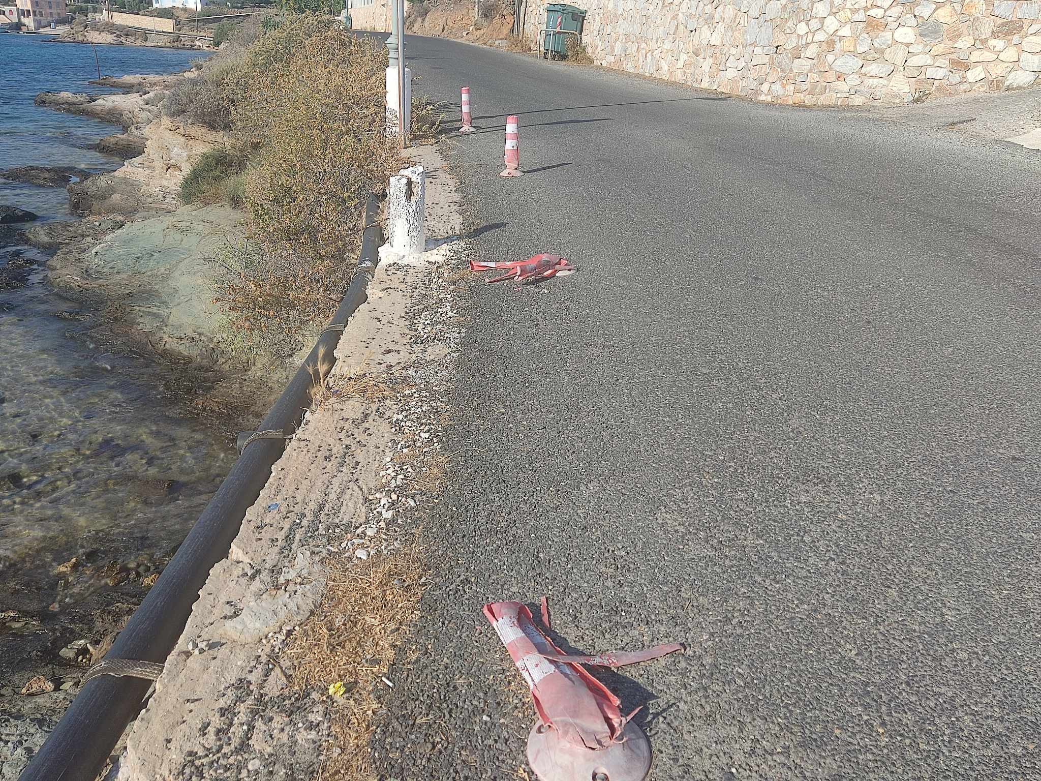 Συγκεκριμένα, αν και στο πρώτο κομμάτι του δρόμου και ειδικότερα στην παραλία του Φετουρή τα τελευταία χρόνια λήφθηκε μέριμνα και τοποθετήθηκαν προστατευτικά κιγκλιδώματα ώστε σε περίπτωση τροχαίου, τα οχήματα και οι μηχανές να μην πέσουν στο βραχώδες μέρος, ωστόσο, δεν έγινε κάτι αντίστοιχο στο υπόλοιπο τμήμα. Αναλυτικότερα, παραμένουν τα κατεστραμμένα λευκά χτιστά μικρά κολωνάκια, από τα οποία περισσεύουν σίδερα, ενώ ακόμη και τα πορτοκαλί πλαστικά κολωνάκια είναι σπασμένα και δεν έχουν αντικατασταθεί.