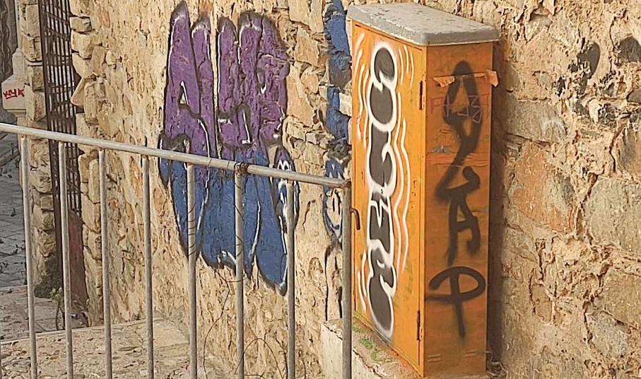 Νέα… επιδρομή με σπρέι και μπογιές στο Δημαρχιακό Μέγαρο και στη Δημοτική Βιβλιοθήκη
