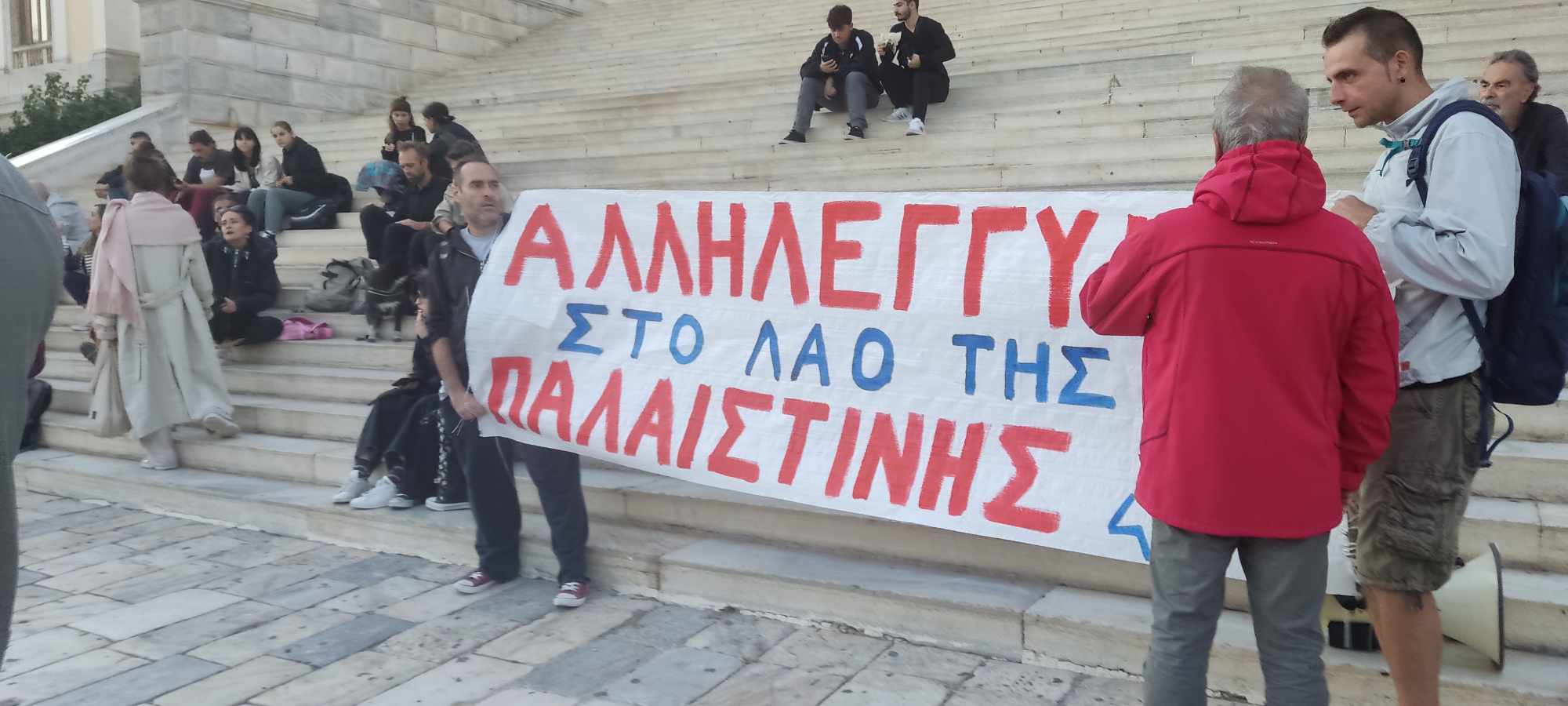Η μαζική συμμετοχή των εργαζομένων και του λαού της Ελλάδας σε κάθε γωνία της χώρας στα συλλαλητήρια και η καθημερινή πολύμορφη δράση για Λευτεριά στη Παλαιστίνη έχουν τοποθετήσει το λαό μας στη σωστή πλευρά της ιστορίας. Στο πλευρό του παλαιστινιακού λαού. Οι δράσεις μας συναντιούνται με τις δράσεις των λαών όλου του κόσμου. Ο καθένας μας ξεχωριστά λέει στο λαό της Παλαιστίνης:
