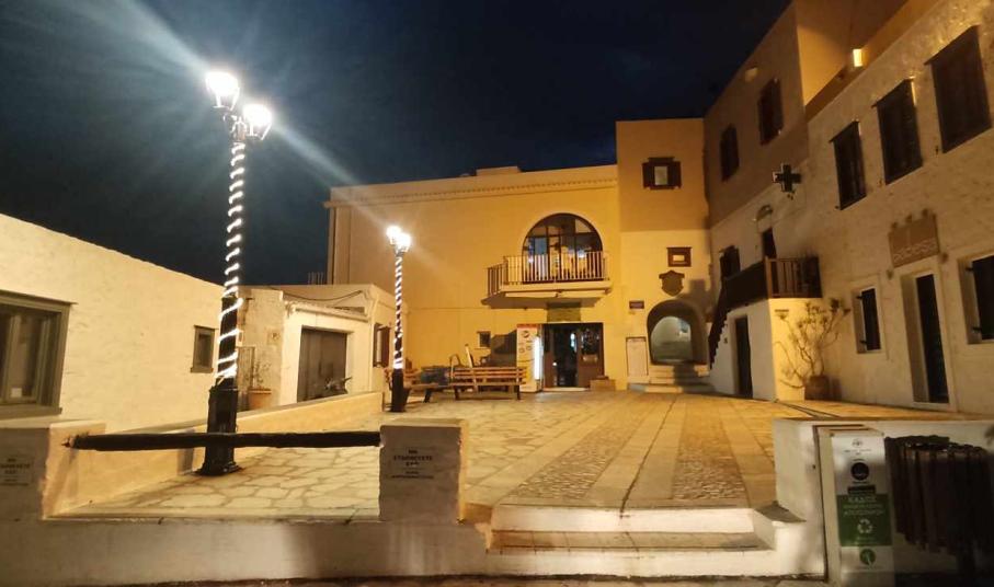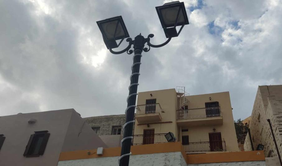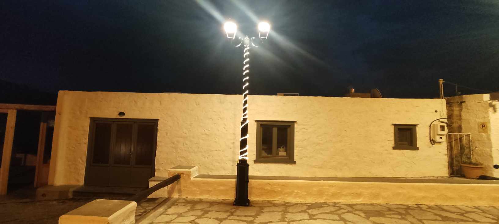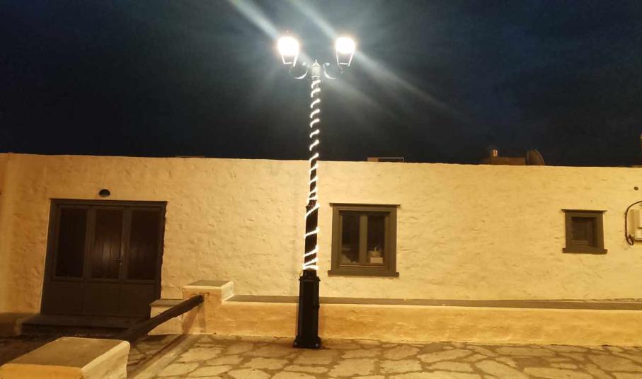 Με μόλις δύο φωτεινές γιρλάντες που “ντύνουν” τα νέα φωτιστικά σώματα στην είσοδο του μεσαιωνικού οικισμού έχει στολίσει ο Δήμος Σύρου – Ερμούπολης, την Άνω Σύρο, για τη φετινή περίοδο των Χριστουγέννων.
