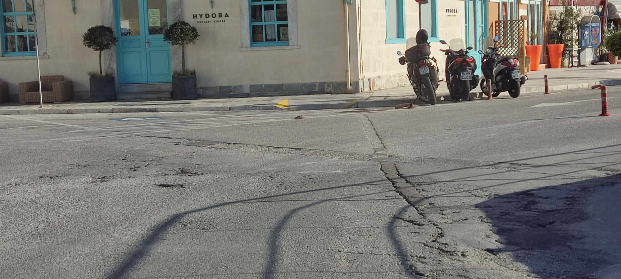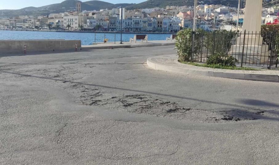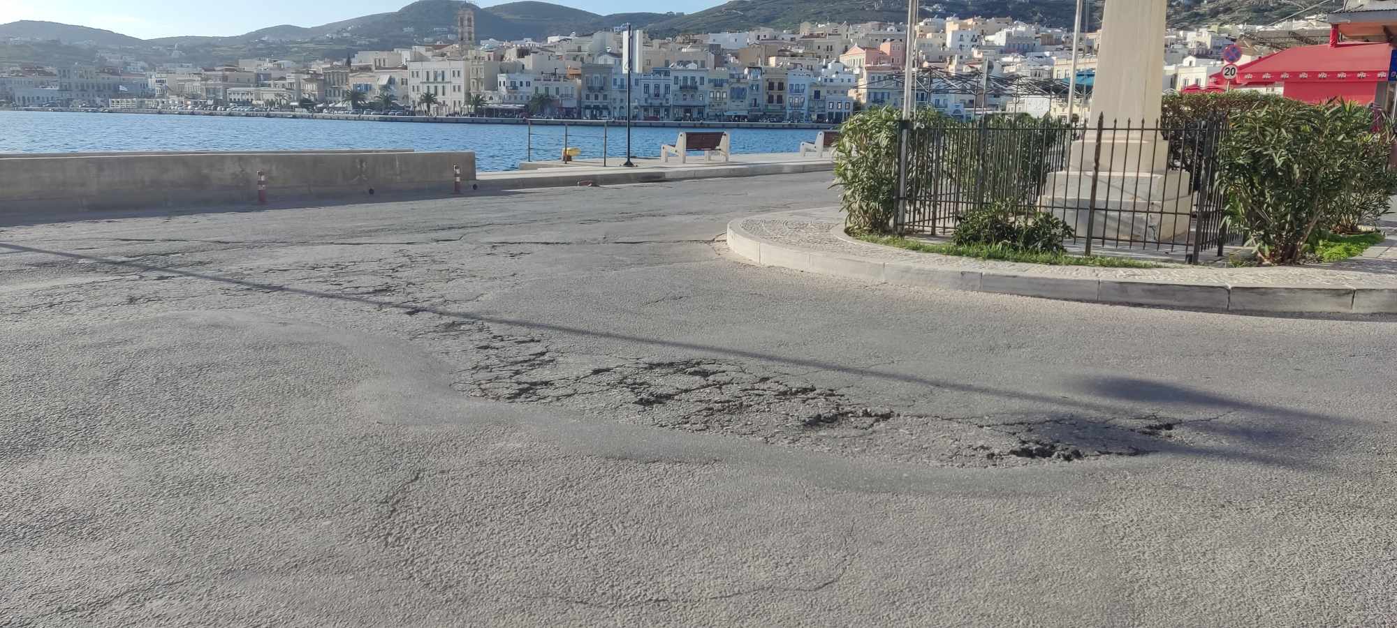 Παντελής απουσία αντανακλαστικών από τον Δήμο Σύρου – Ερμούπολης και το Λιμενικό Ταμείο Σύρου όσον αφορά στην κατάσταση του οδοστρώματος στην πλατεία Κανάρη, ασχέτως αν οι οδηγοί εκφράζουν συνεχώς παράπονα και ανησυχία για σοβαρό ενδεχόμενο πρόκλησης ατυχήματος, λόγω μεγάλων φθορών.
