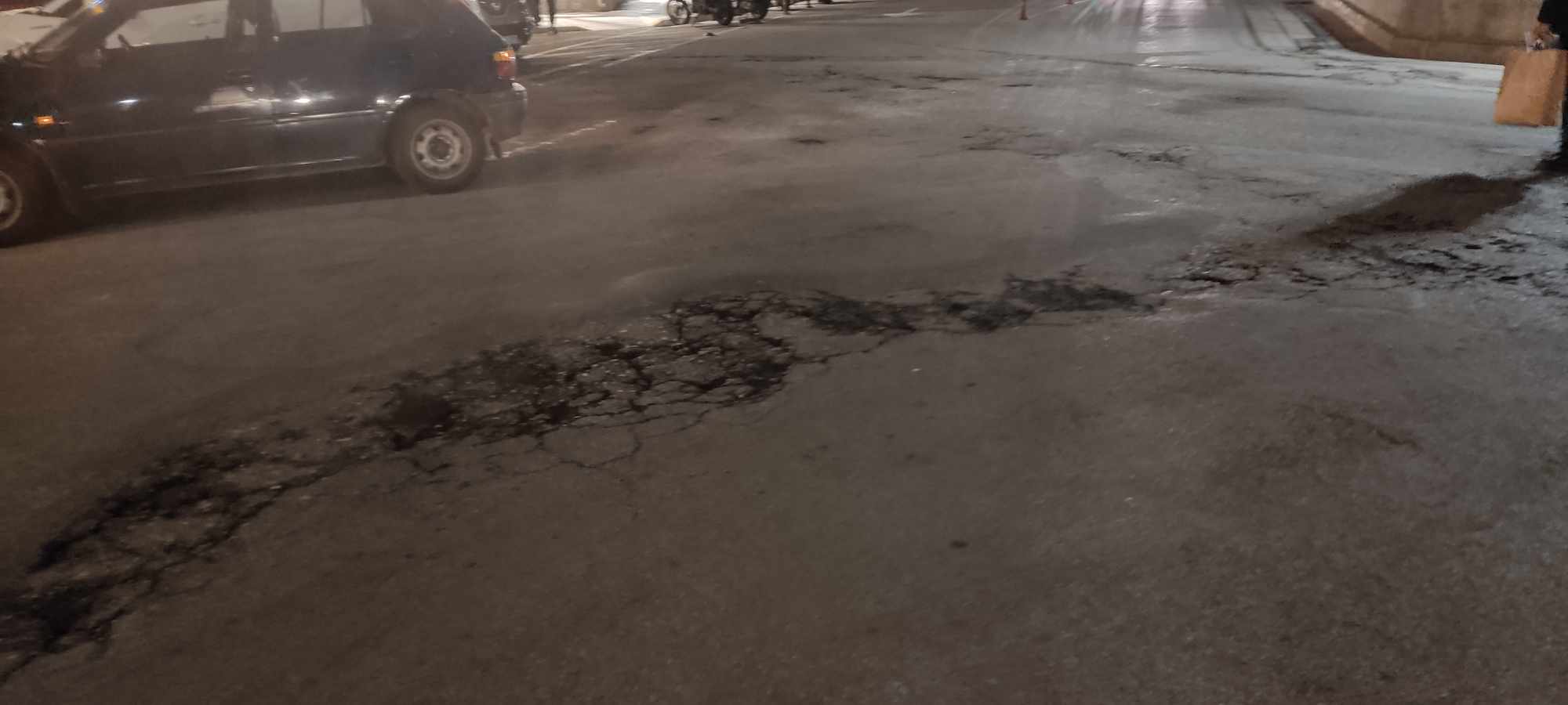 Ειδικότερα, μεγάλα τμήματα της έκτασης του δρόμου περιμετρικά της προτομής, αλλά και στο κομμάτι που οδηγεί στο parking ελεγχόμενης στάθμευσης, παραμένουν με λακκούβες και έντονες ανομοιομορφίες, με αποτέλεσμα οι οδηγοί μηχανών να “πέφτουν” συνέχεια σε αυτές. Πρέπει να αναφερθεί πως η επικινδυνότητα αυξάνεται τις βραδινές ώρες γιατί δεν διακρίνονται εύκολα οι “παγίδες” από τους οδηγούς, ενώ δεν είναι μικρός ο αριθμός και των πεζών που έχουν τραυματιστεί μετά από πτώση.