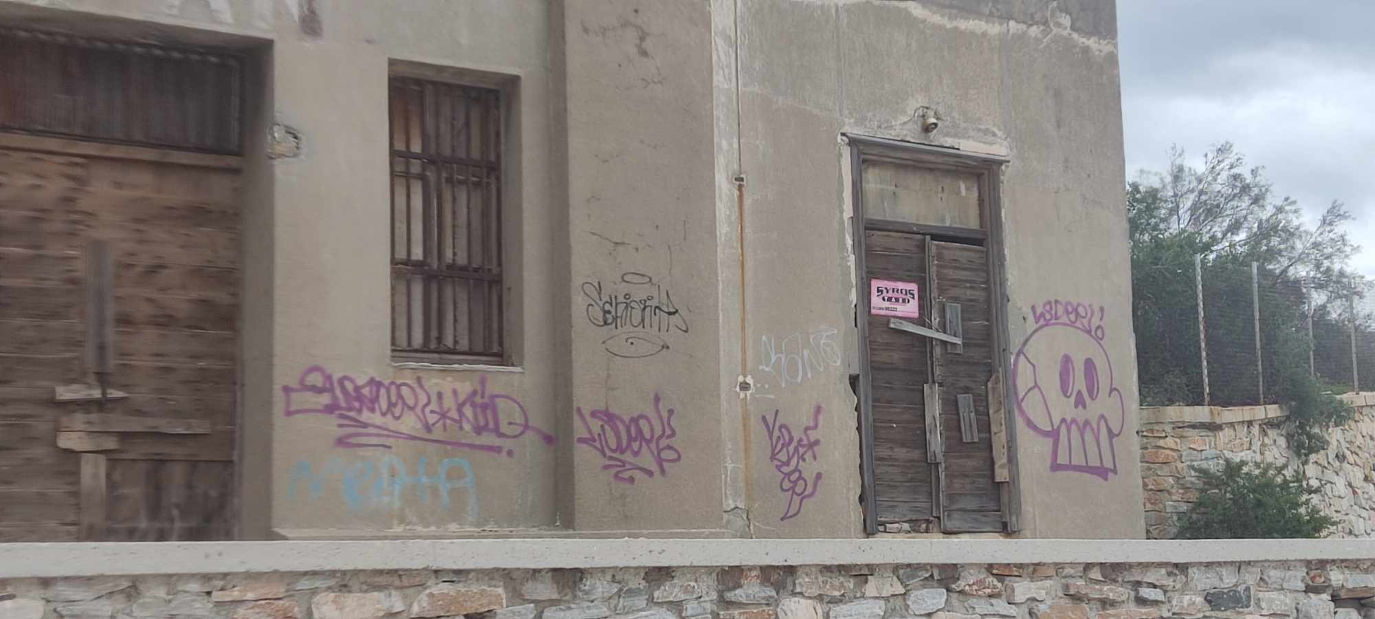 Ένα ακόμη κτήριο ιστορικής σημασίας της Σύρου “τυλίγεται” στη δίνη των γκράφιτι, καθώς άγνωστοι προέβησαν σε σχετικές “επιθέσεις” με μπογιές και σπρέι, σε όλη την πρόσοψή του.