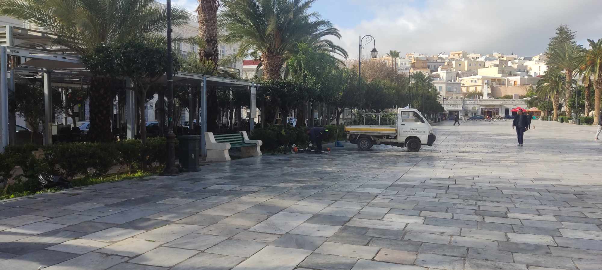 Τον καλύτερό τους εαυτό καταβάλλουν καθημερινά οι εργάτες της Καθαριότητας στον Δήμο Σύρου – Ερμούπολης προκειμένου να φροντίσουν τους δημόσιους χώρους, τα πάρκα, τις πλατείες και τα αλσύλλια της πόλης, παρά τον “εφιάλτη” της έλλειψης δυνάμεων στην Υπηρεσία.