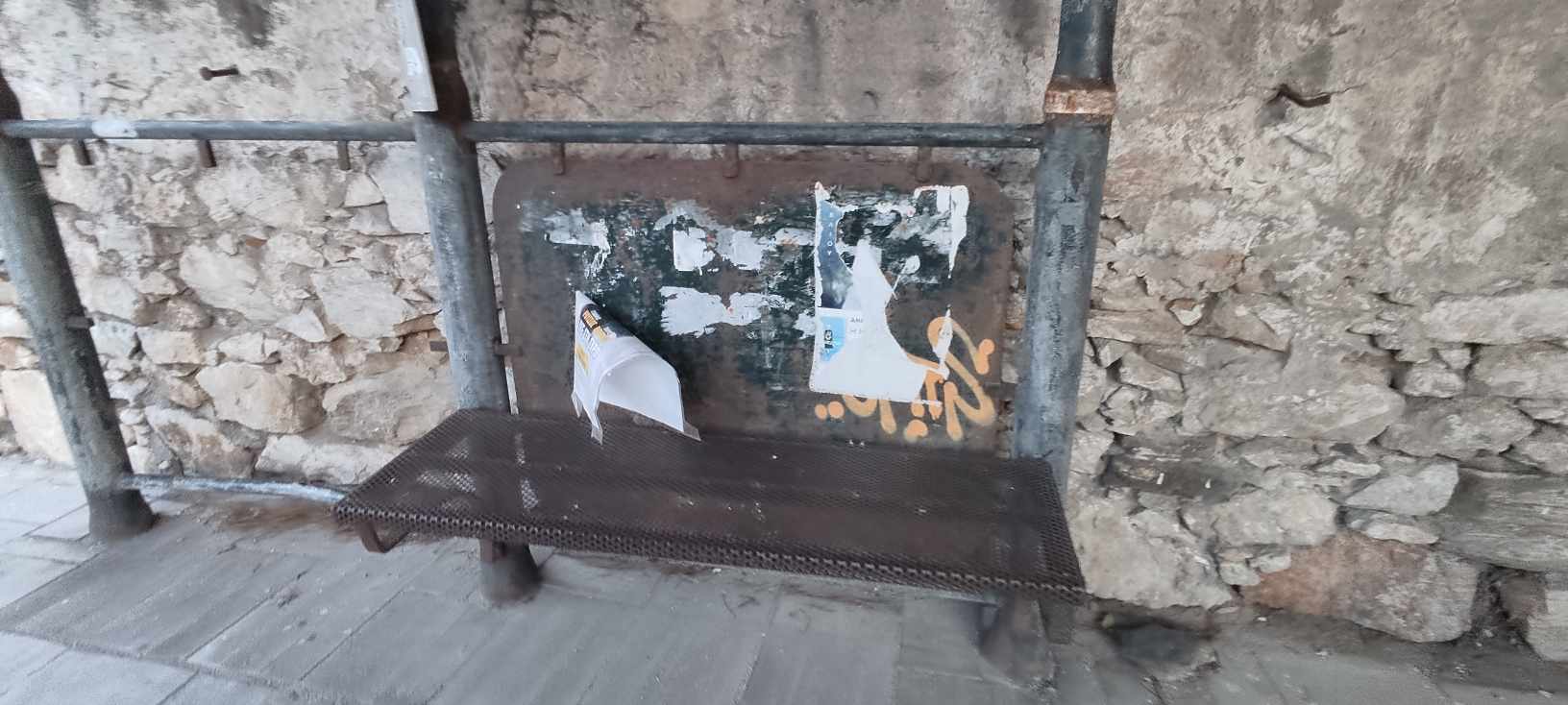 Ειδικότερα, οι μεταλλικές στάσεις στην ευθεία της Ηρώων Πολυτεχνείου όπως επίσης και στην οδό Νικ. Μανδηλαρά, σχεδόν στο σύνολό τους και με εξαίρεση τη μία και μοναδική καινούργια, έχουν αποκτήσει μεγάλες φθορές. Συγκεκριμένα, οι οροφές τους στάζουν, με αποτέλεσμα το νερό της βροχής να “πέφτει” στα κεφάλια των πολιτών, ενώ ακόμη τμήματα των καθισμάτων τους έχουν σπάσει. Όλες οι επιφάνειές τους έχουν σκουριάσει ενώ δεν υπάρχει αναρτημένο πουθενά, υλικό με τα δρομολόγια.