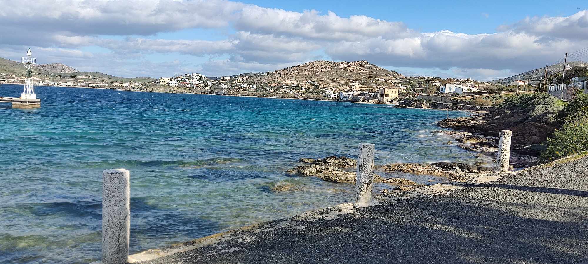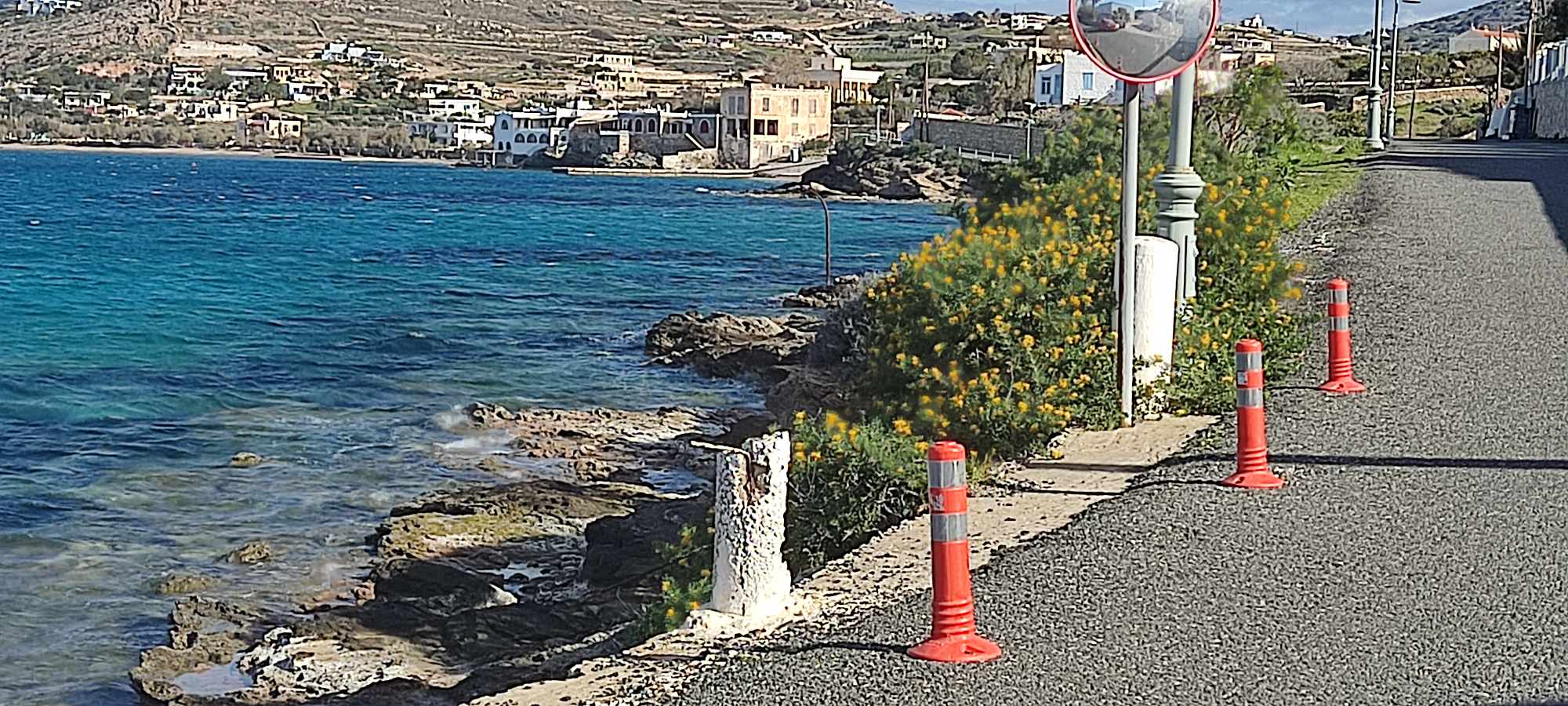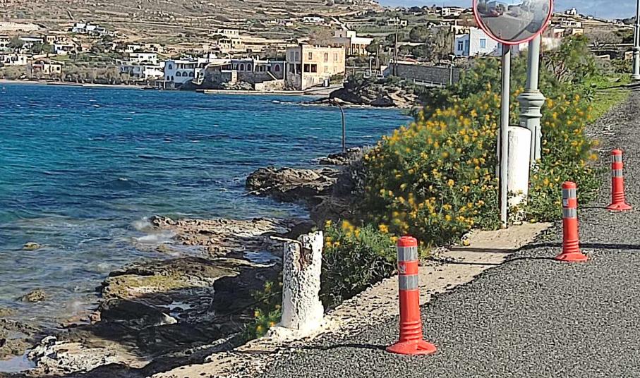 Επιπλέον, σε ένα τμήμα του δρόμου που διαθέτει παλιά κολωνάκια, λείπουν οι ανακλαστικές ταινίες, κάτι που δεν βοηθά στο να διακρίνουν το όριο του ασφαλτοστρωμένου δρόμου, οι διερχόμενοι.