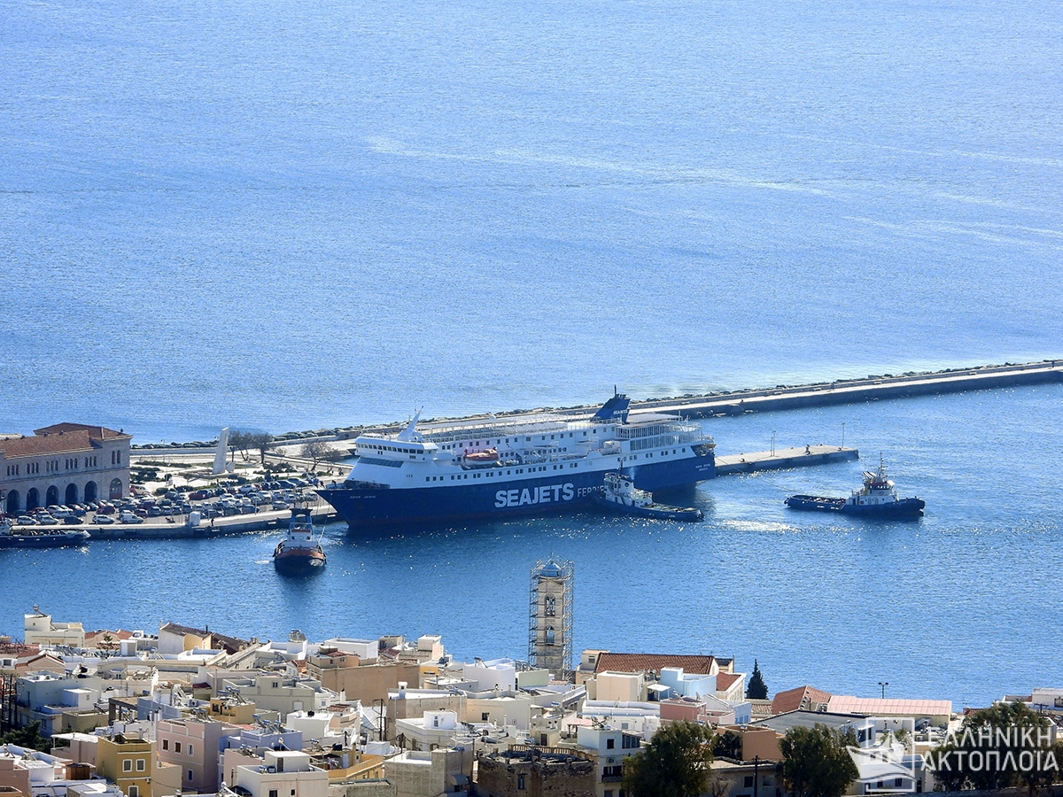Σήμερα το πρωί, στις 11 :15΄, έφτασε στο λιμάνι της Σύρου, το επιβατηγό-οχηματαγωγό AQUA JEWEL, ρυμουλκούμενο από το Ρ/K ΑΠΟΛΛΩΝ.