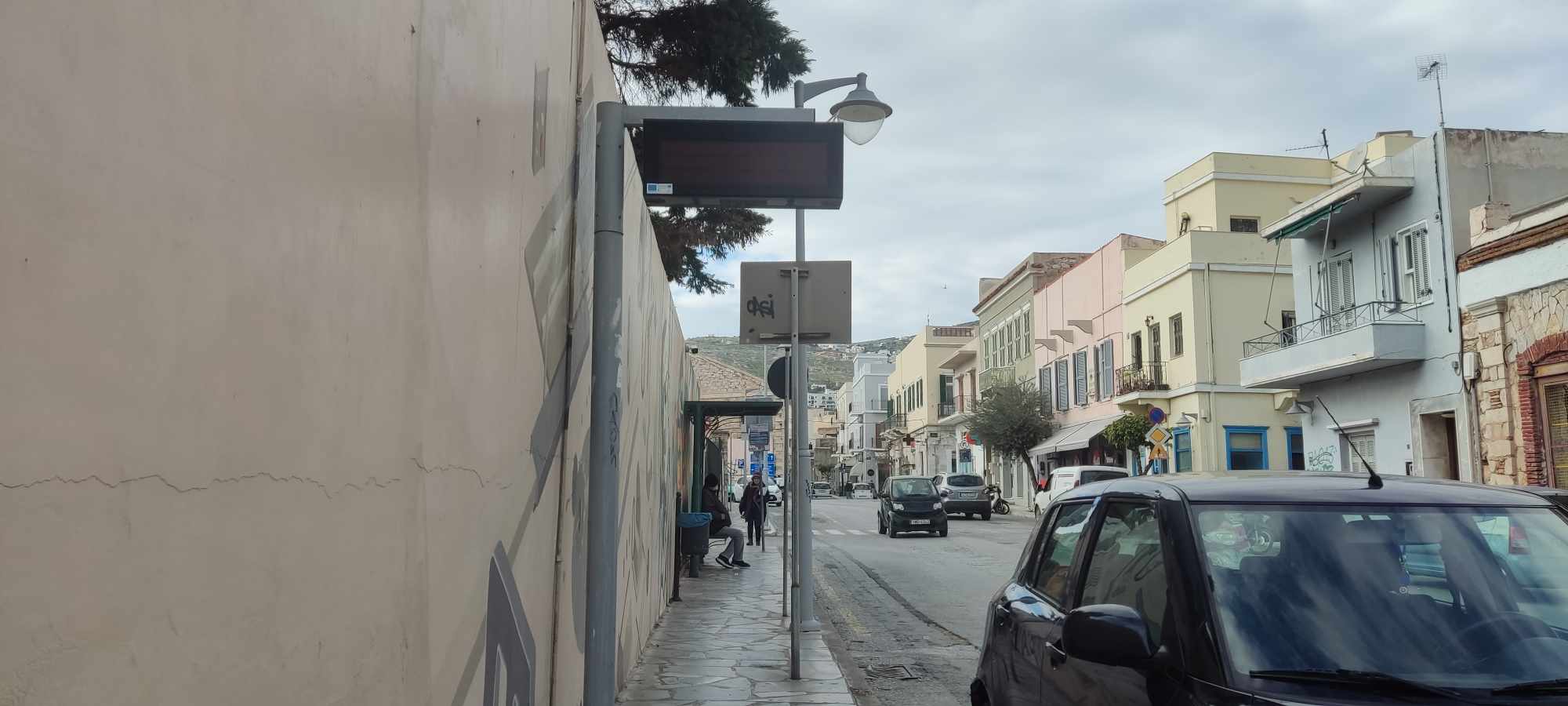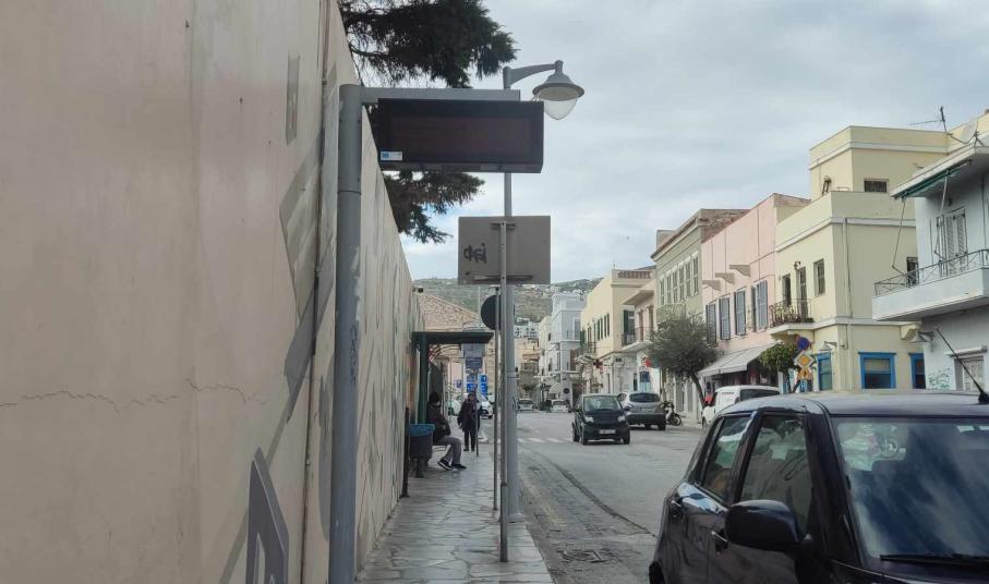Ειδικότερα, οι υπάρχουσες οθόνες είναι εκτός λειτουργίας, ενώ μία μόνο εξ αυτών λειτουργεί στην πλατεία Μιαούλη. Ωστόσο κι αυτή όχι μόνο δεν παρέχει ορθή πληροφόρηση, αντιθέτως μάλιστα, δεν είναι συγχρονισμένη σωστά ούτε στο κομμάτι της ώρας. Επιπλέον, μία οθόνη έχει σπάσει μετά από πτώση αντικειμένου και συγκεκριμένα στο ύψος απέναντι από τα συστήματα υπόγειων κάδων στην παραλία Ερμούπολης.