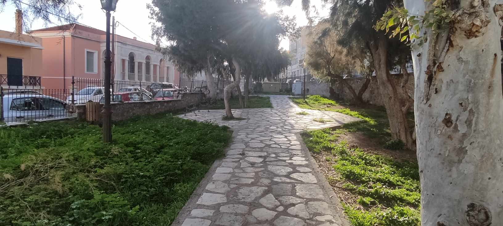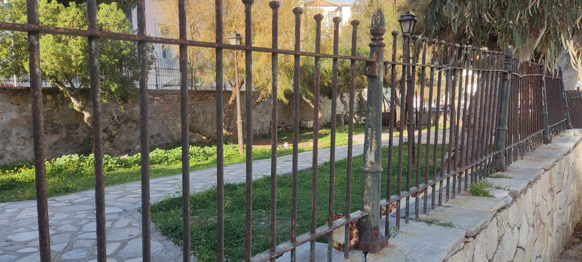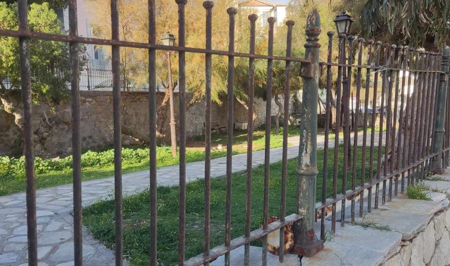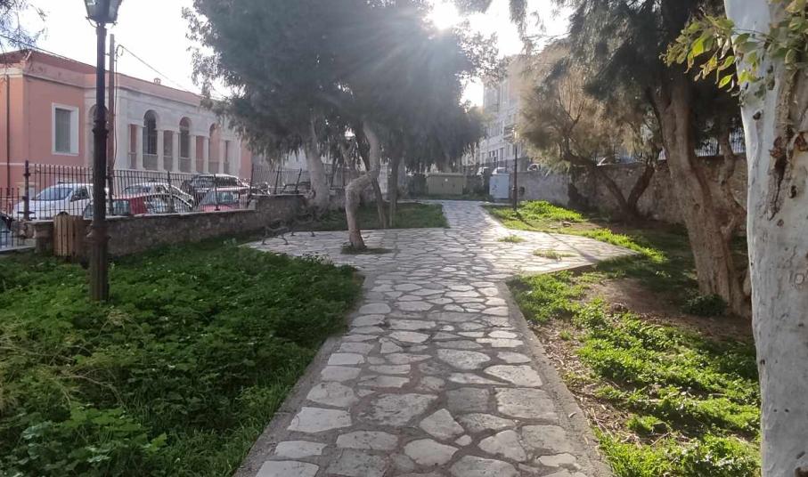 Πρόκειται για ένα κηπάριο που βρίσκεται σε μία από τις ωραιότερες συνοικίες της Ερμούπολης και που δυστυχώς παρουσιάζει μεγάλες φθορές, με το πέρασμα του χρόνου. Συγκεκριμένα, η περίφραξή του χρειάζεται συνολικά αντικατάσταση ή εκτεταμένες συντηρήσεις, καθώς τμήματά της όχι μόνο έχουν αποχρωματιστεί και σκουριάσει, αλλά έχουν αποκολληθεί από τις βάσεις τους. Παράλληλα, απαιτείται συντήρηση και επανατοποθέτηση μαρμάρων, αφού ορισμένα εξ αυτών έχουν σπάσει, ενώ ακόμη, χρειάζεται περιποίηση στα σκαλοπάτια της εισόδου του, αλλά και στον εσωτερικό χώρο του. Σημειώνεται πως στο κηπάριο υπάρχουν μόλις δύο κατεστραμμένα παγκάκια και ως εκ τούτου, απαιτείται προμήθεια νέου εξοπλισμού που θα καλύπτει τις ανάγκες των πολιτών που το επισκέπτονται.