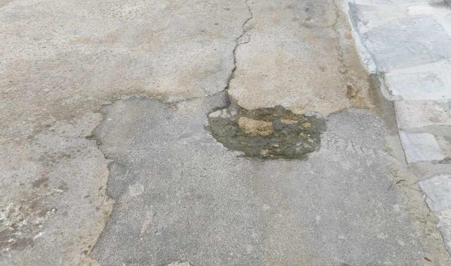 Ειδικότερα, σε όλο το μήκος του δρόμου έχει λακκούβες και μεγάλες φθορές η τσιμεντόστρωση, με αποτέλεσμα όχι μόνον να διατρέχουν κίνδυνο να χάσουν την ισορροπία τους οι οδηγοί μηχανών, αλλά και να μην μπορούν να βαδίσουν με ασφάλεια οι πεζοί τις βραδινές ώρες.