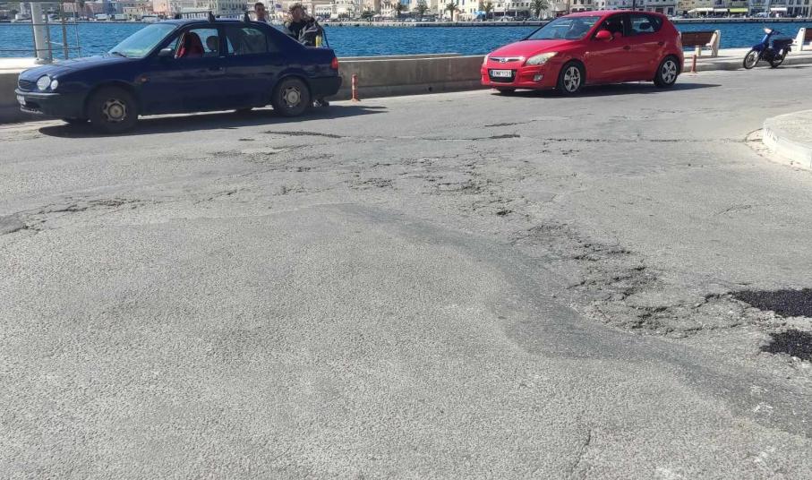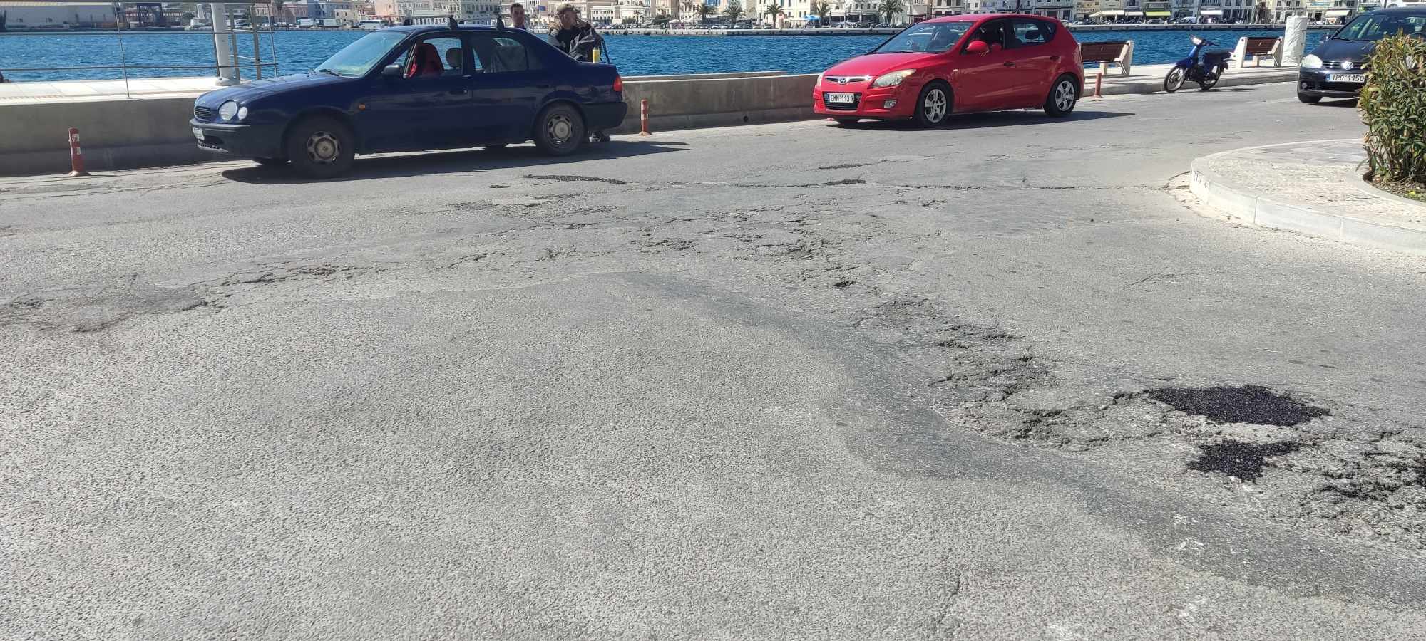 Κόντρα στα τμήματα της ανάπλασης, τόσο στην παραλιακή ζώνη, όσο και στην προβλήτα της κρουαζιέρας, αλλά και στον πεζόδρομο, το εν λόγω κομμάτι του δρόμου, εξακολουθεί να είναι σε πολύ κακή κατάσταση.