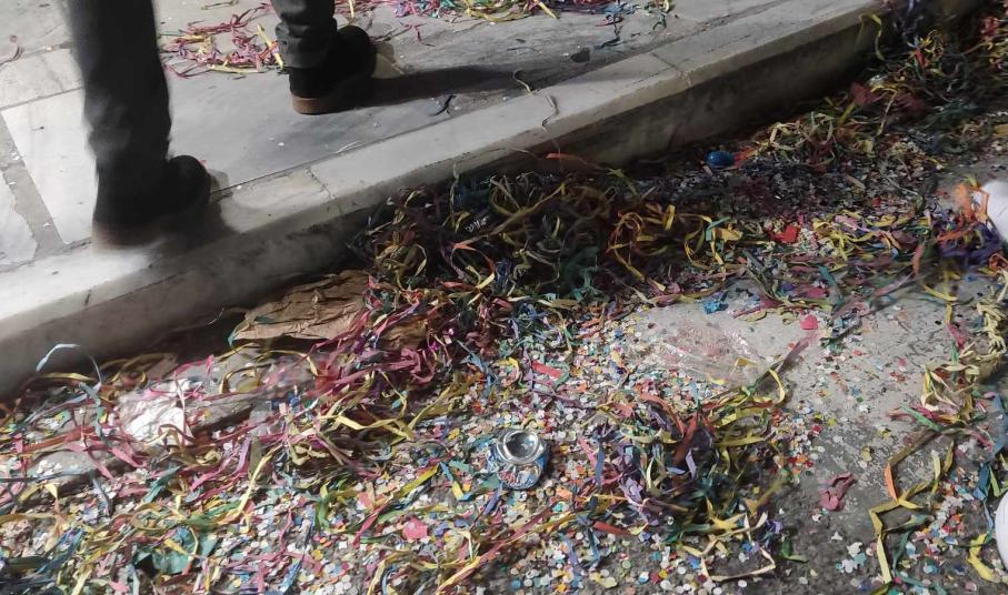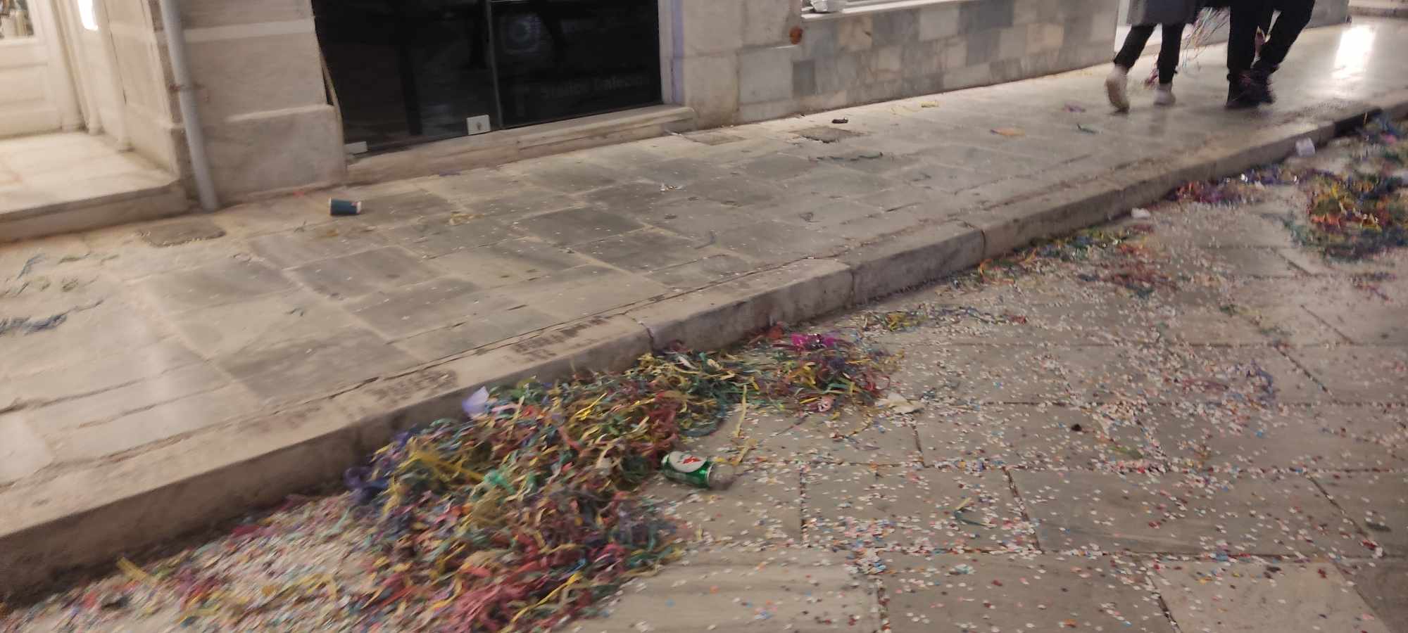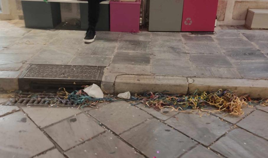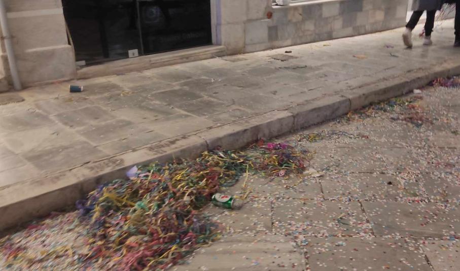 Μικρά “βουνά” από σεραντίνες, κομφετί, αλλά και πλαστικά μπουκάλια, πλαστικά ποτήρια και συσκευασίες από τρόφιμα, όπως όμως και σπασμένα αυγά σε μικρά στενά της πόλης αποτέλεσαν τα απόνερα της επιτυχημένης καρναβαλικής παρέλασης στο κέντρο της Ερμούπολης.
