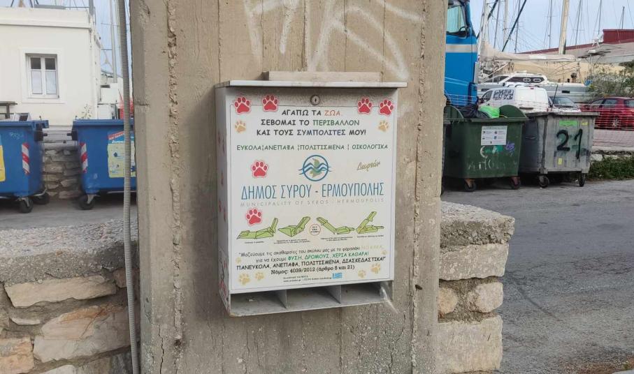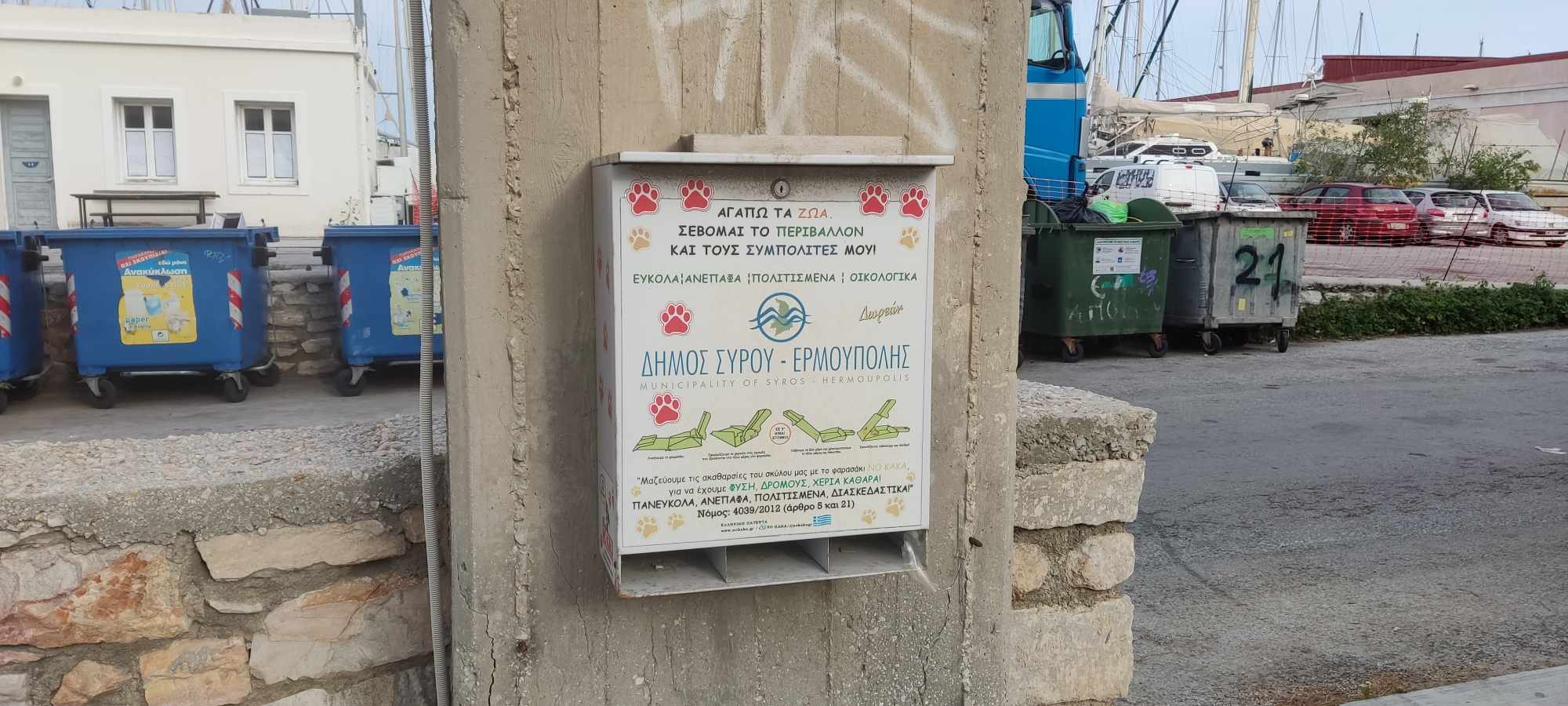 Χωρίς τον απαραίτητο εξοπλισμό για τους πολίτες που έχουν κατοικίδια, παραμένουν τα μεταλλικά κυτία NO KAKA στη Σύρο, με αποτέλεσμα, τα περιττώματα των ζώων, σε πολλές περιπτώσεις, να μη μαζεύονται από τις πλατείες και τα αλσύλλια.
