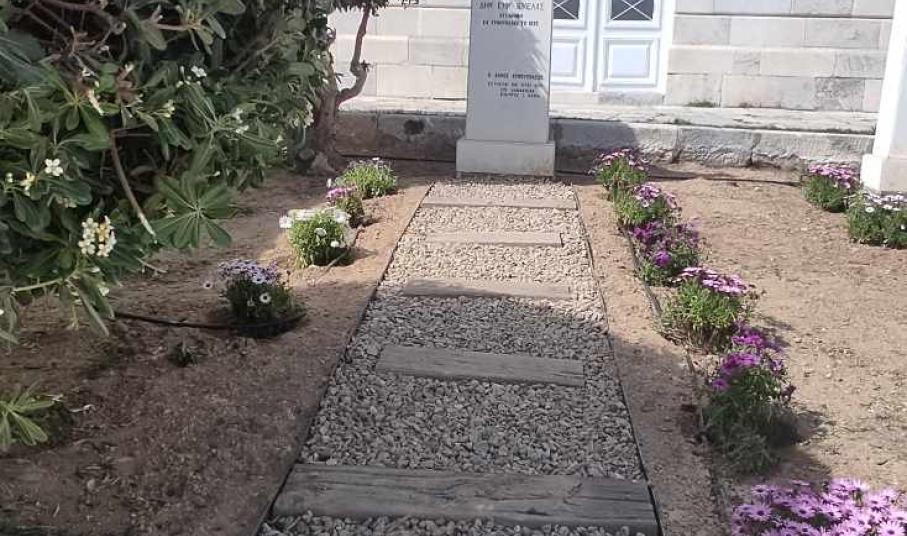 Ιδιαίτερα θετική εντύπωση προκαλεί η διαμόρφωση διαδρόμου που οδηγεί στην προτομή του, προκειμένου οι επισκέπτες αλλά και οι κάτοικοι της Σύρου, να έχουν πρόσβαση στο σημείο.