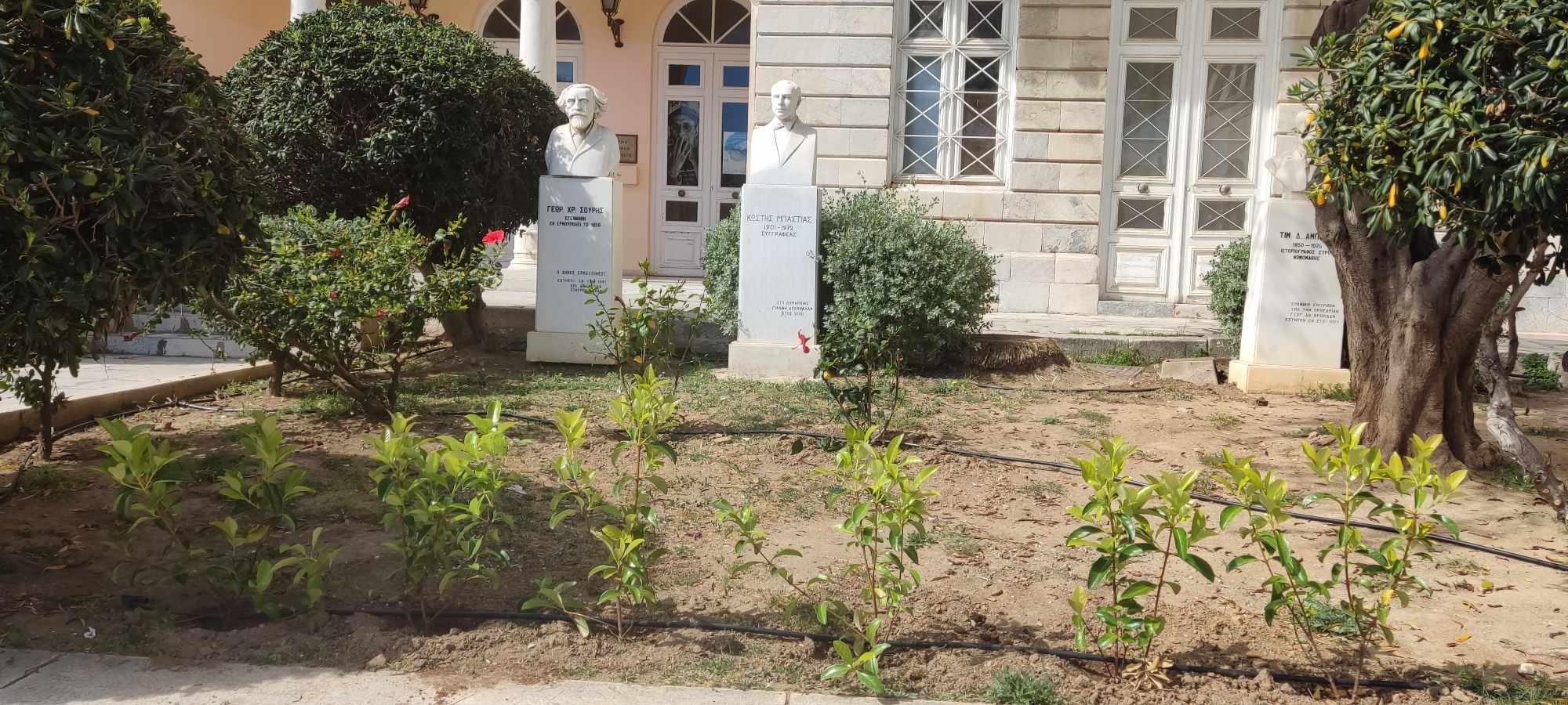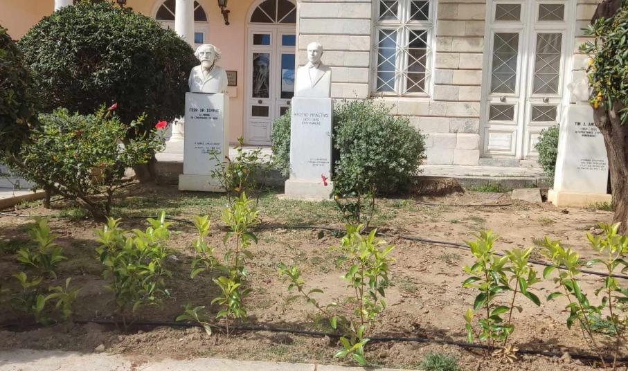 Ουσιαστική φροντίδα ανέπτυξε για τα παρτέρια μπροστά από τον χώρο της Δημοτικής Βιβλιοθήκης ο Δήμος Σύρου – Ερμούπολης, αναδεικνύοντας συνολικά τις προτομές των σημαντικών προσωπικοτήτων που υπάρχουν στο σημείο, μια εκ των οποίων και του Δημητρίου Βικέλα.