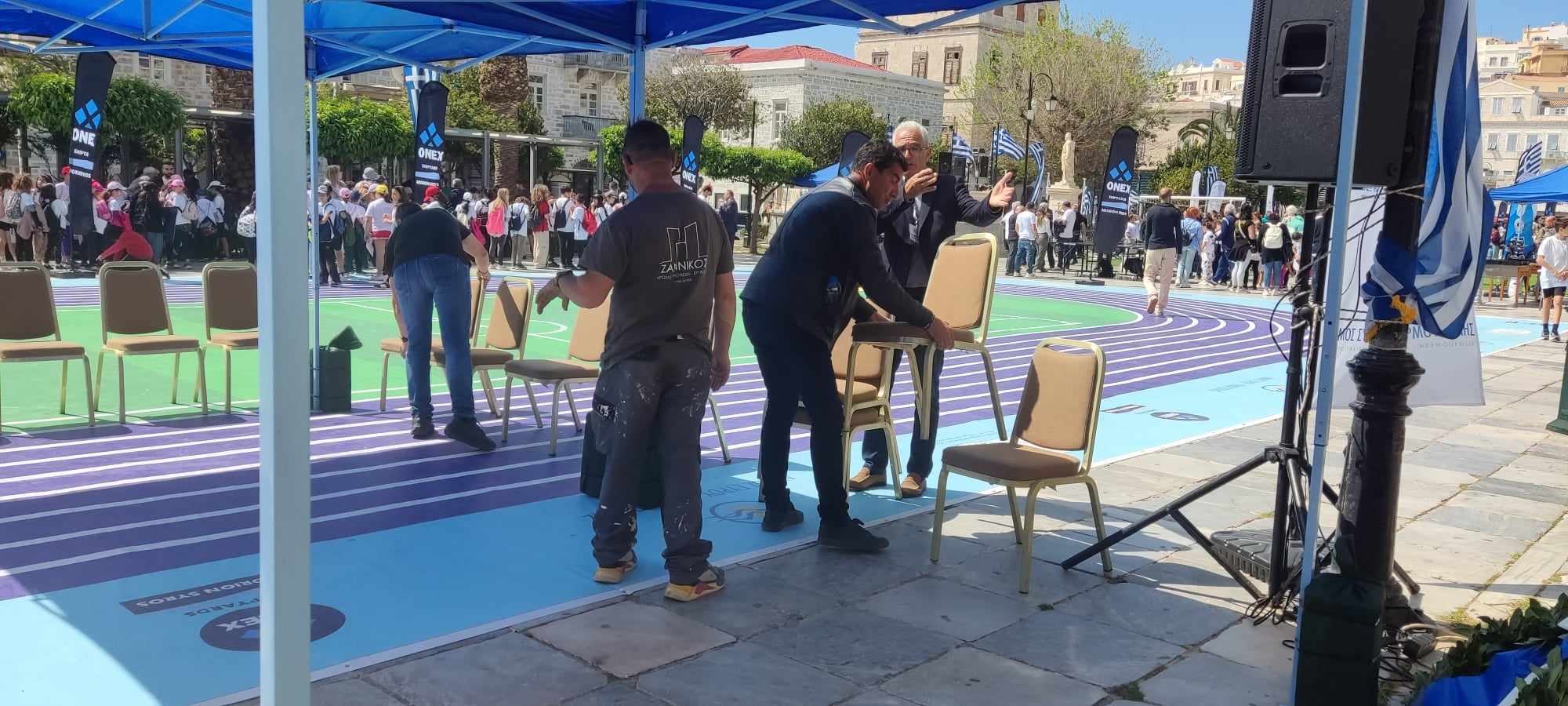 Τον καλύτερό τους εαυτό έδωσαν για την προετοιμασία και ομαλή διεξαγωγή της αθλητικής εβδομάδας “Δημήτριος Βικέλας”, ο αντιδήμαρχος Καθημερινότητας του Δήμου Σύρου - Ερμούπολης, Γιάννης Μαραγκός και οι εργάτες του Τμήματος Μικρών Έργων, όσον αφορά στις διαμορφώσεις στην πλατεία Μιαούλη.