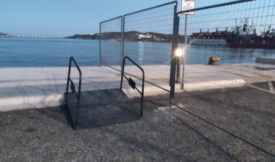 Μέτρα για την αποφυγή ατυχήματος από ενδεχόμενο σπάσιμο κάβου, στο ύψος της εξόδου του λιμένα Ερμούπολης στην πλευρά του kiss ‘n’ ride, πήρε το Λιμενικό Ταμείο Σύρου, για την προστασία όσων επιβιβάζονται και αποβιβάζονται στα πλοία.