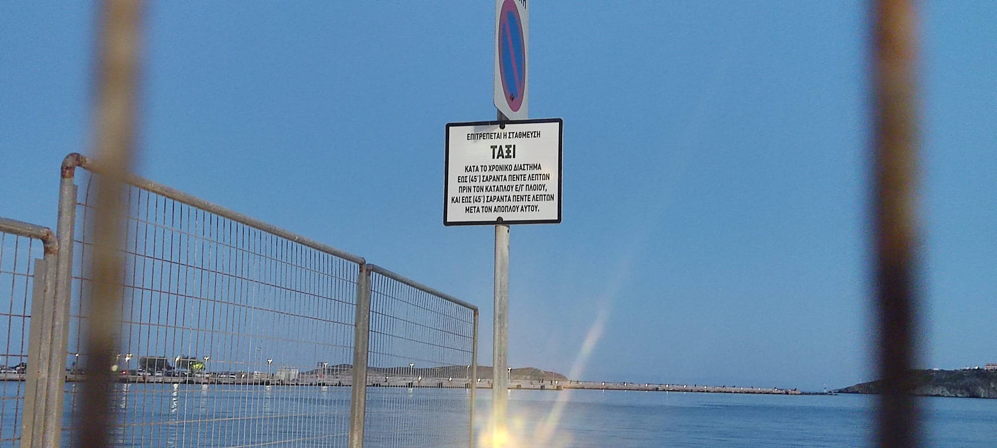 Ειδικότερα, τοποθέτησε μία σχετικά μεγάλη περίφραξη, στον χώρο που στάθμευαν τα ταξί για να εξυπηρετήσουν τους επισκέπτες του νησιού, δίπλα από το σημείο που “δένουν” τα πλοία, με σκοπό τη μη προσέγγιση των πολιτών. Στο σημείο υπήρχε επικινδυνότητα, καθώς στο απευκταίο σενάριο που έσπαγε κάβος, ο τραυματισμός πολίτη που θα βρισκόταν στο σημείο θα ήταν σοβαρός.