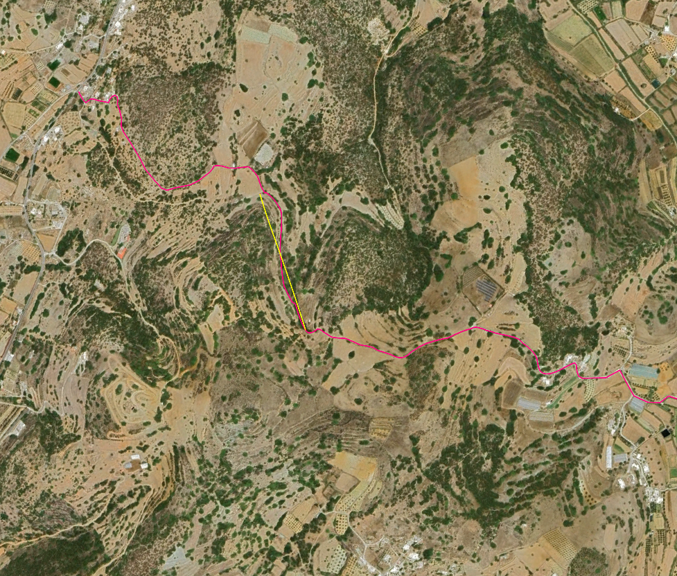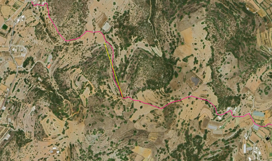 Ο Πολιτιστικός Σύλλογος Πάγου πραγματοποιεί κατά τα δύο τελευταία Σαββατοκύριακα, εργασίες κλαδονομής σε τμήμα (με κίτρινο στην εικόνα) του μονοπατιού Πάγος - Γαλησσάς με σκοπό την αποκατάσταση της βατότητάς του.