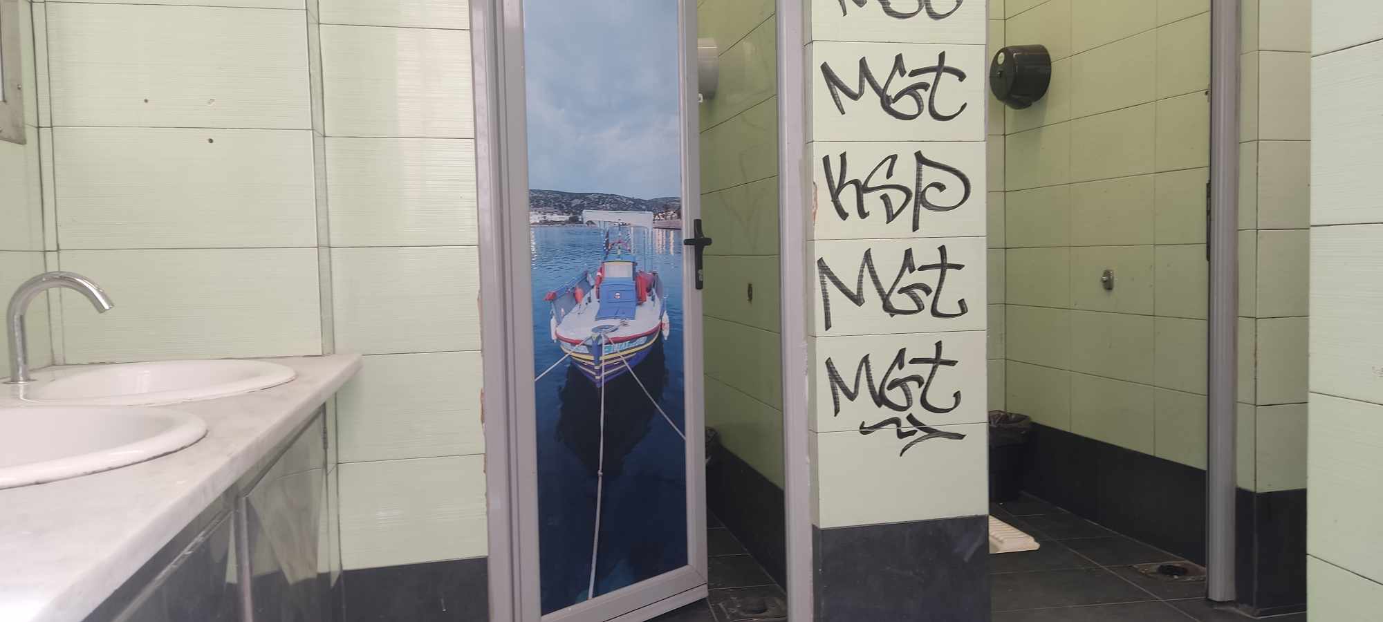 Ειδικότερα, έβαψαν τους εσωτερικούς χώρους των δημοτικών τουαλετών και συγκεκριμένα στην πλευρά που είναι οι πόρτες. Μάλιστα ο Δήμος είχε ενισχύσει αισθητικά την εικόνα τους, τοποθετώντας και ειδικά εκτυπωμένες φωτογραφίες που απεικονίζουν όμορφα σημεία του νησιού.