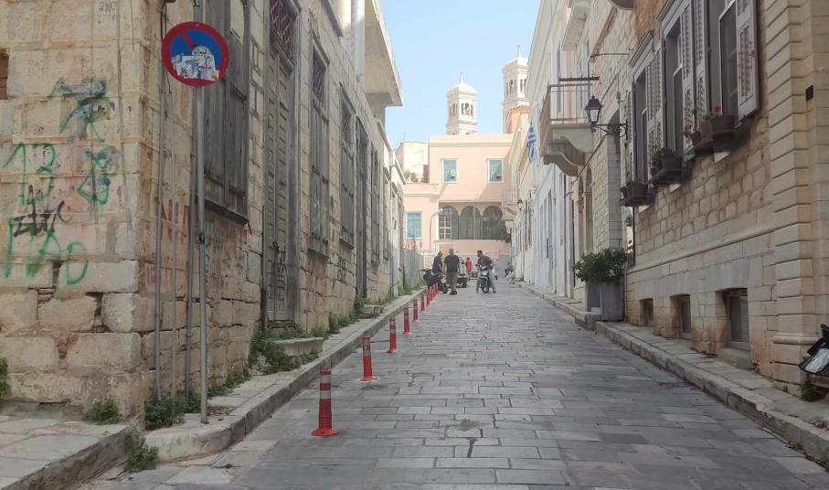 Δεδομένης της σχετικής πινακίδας ΚΟΚ που υπάρχει στην αρχή της οδού, στην οποία δραστηριοποιούνται πολλές καλές - ποιοτικά - ξενοδοχειακές επιχειρήσεις της Ερμούπολης, ο Δήμος Σύρου – Ερμούπολης πήρε ανάλογα μέτρα ώστε να… εξαφανίσει τα οχήματα.