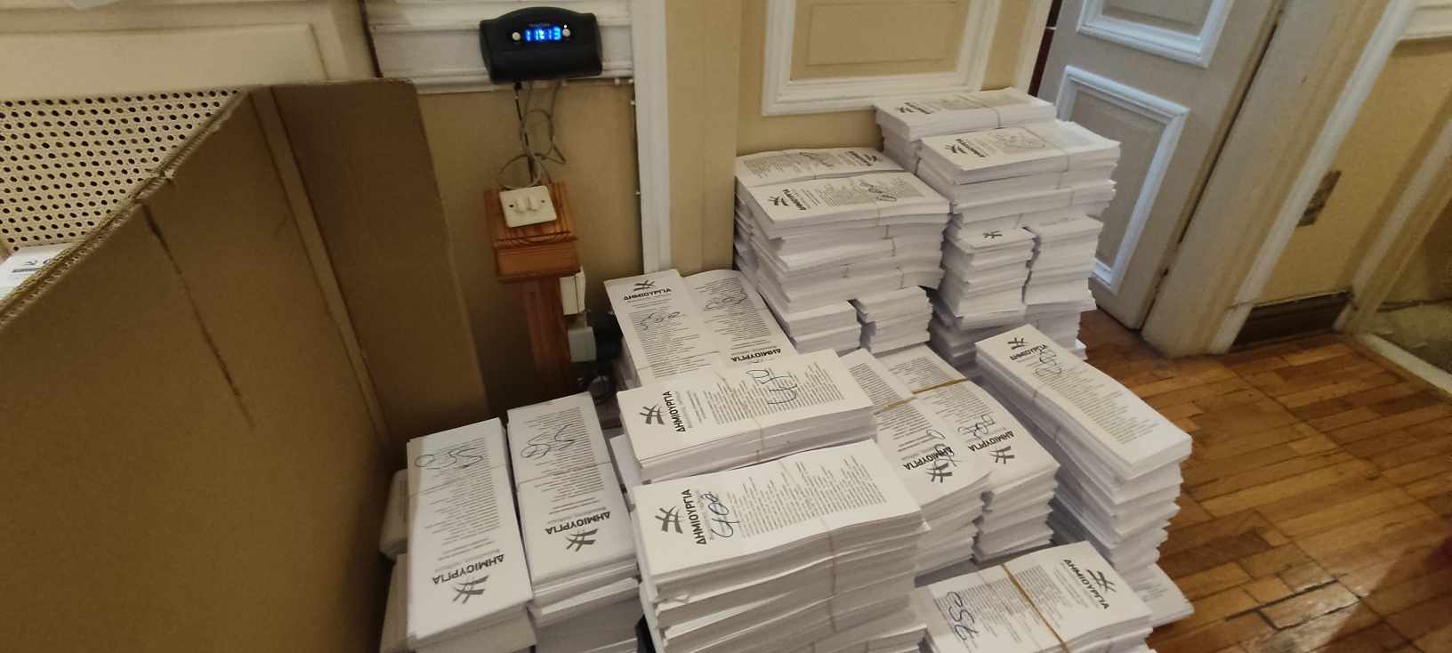 Οι χώροι του κτηρίου της πλατείας Τσιροπινά, έχουν γεμίσει όλο το τελευταίο διάστημα από ψηφοδέλτια κομμάτων και παρατάξεων για την ευρωβουλή, καθώς επίσης με φακέλους και κούτες στις οποίες συσκευάζεται το εκλογικό υλικό.