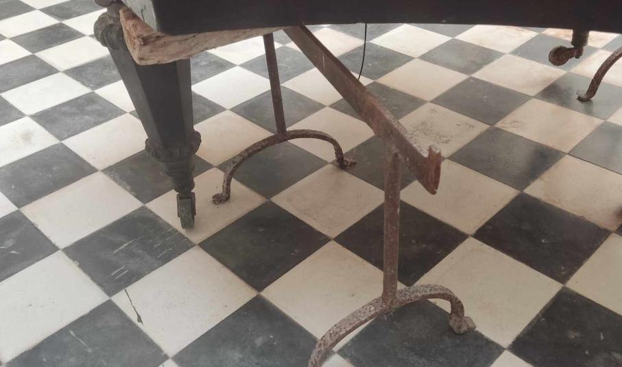 Η κατάστασή του με τις βάσεις που το υποστηρίζουν και σπασμένα τμήματά του στο πάτωμα, δεν κοσμούν… το σημείο, από το οποίο μάλιστα, περνούν καθημερινά αρκετοί επισκέπτες για να φωτογραφήσουν τους χώρους εντός του Δημαρχιακού Μεγάρου.