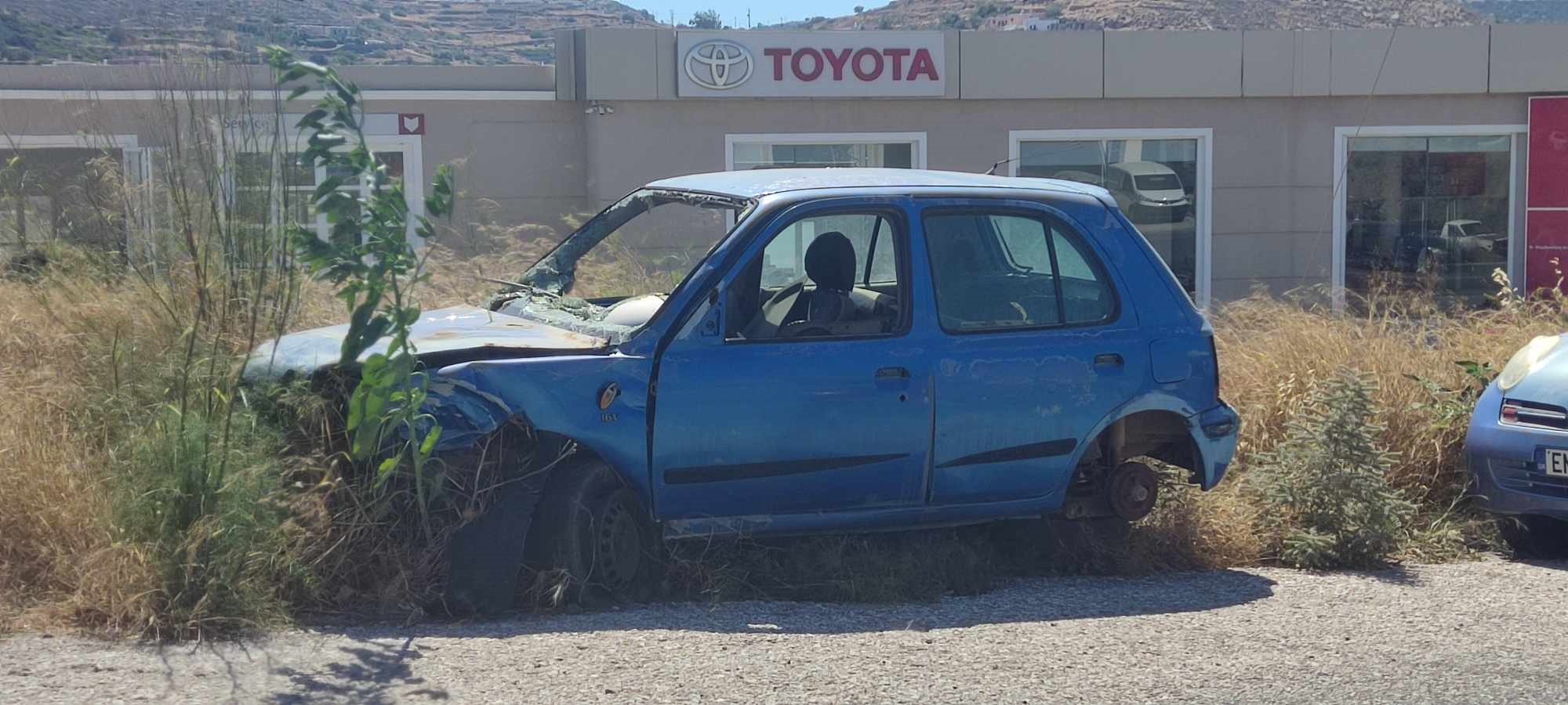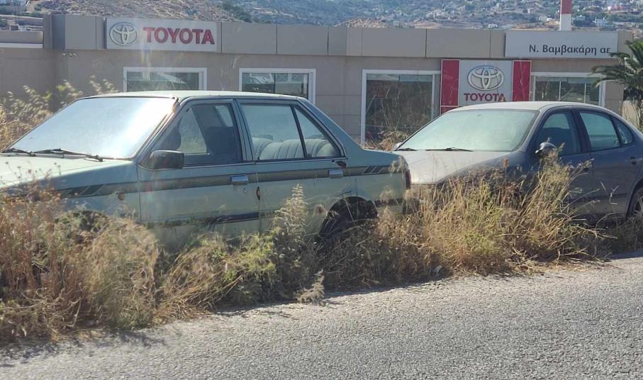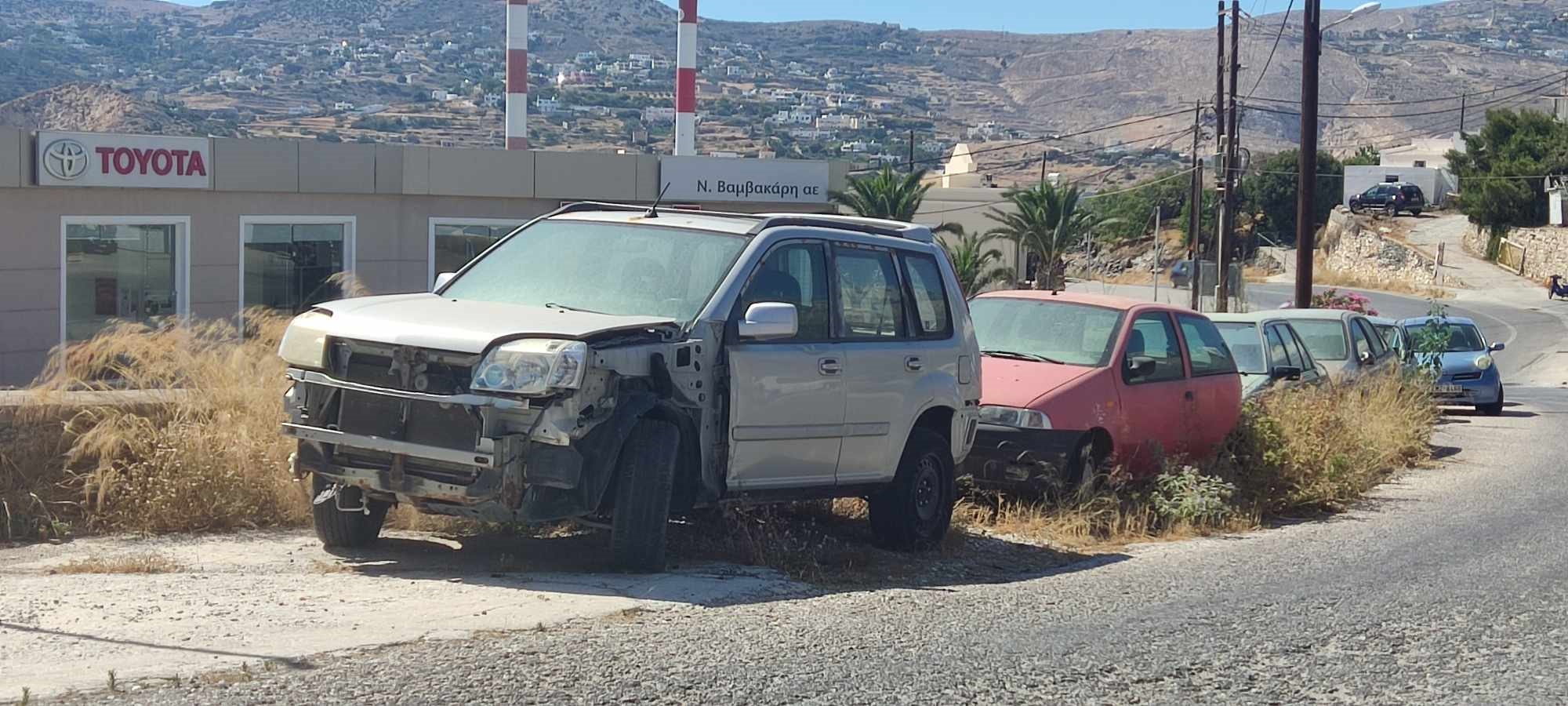 Χαλασμένα οχήματα, χωρίς πινακίδες που φέρουν τεράστιες φθορές, δυστυχώς, δεν έχουν απομακρυνθεί, με ό,τι αυτό συνεπάγεται για την κατάσταση του δρόμου, από τον οποίο καθημερινά διέρχεται σημαντικός κυκλοφοριακός όγκος.
