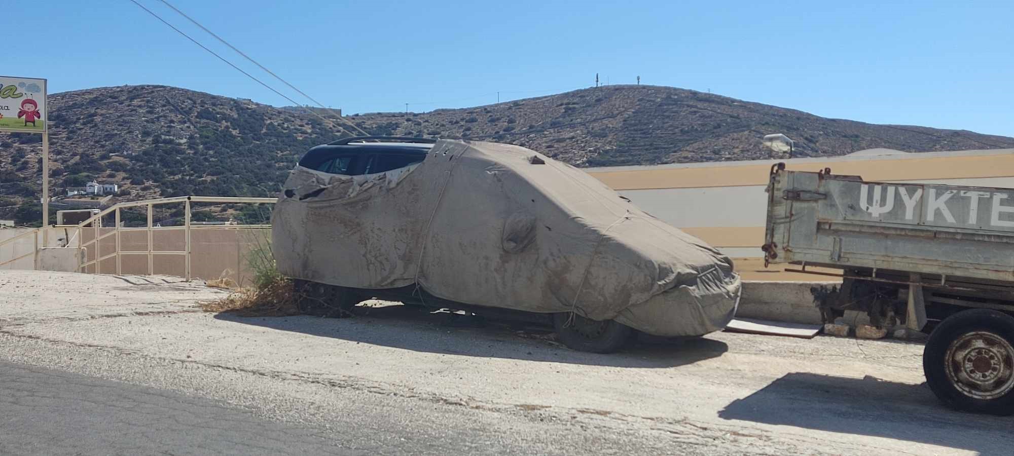Εικόνα που δεν τιμά τον τόπο διαπιστώνεται στον δρόμο που οδηγεί στο Αεροδρόμιο Σύρου, καθώς αρκετά εγκαταλελειμμένα οχήματα αφήνονται προς αποσύνθεση, με ό,τι αυτό συνεπάγεται για το περιβάλλον και την εντύπωση που αποκομίζουν οι επισκέπτες του νησιού που φθάνουν αεροπορικώς.
