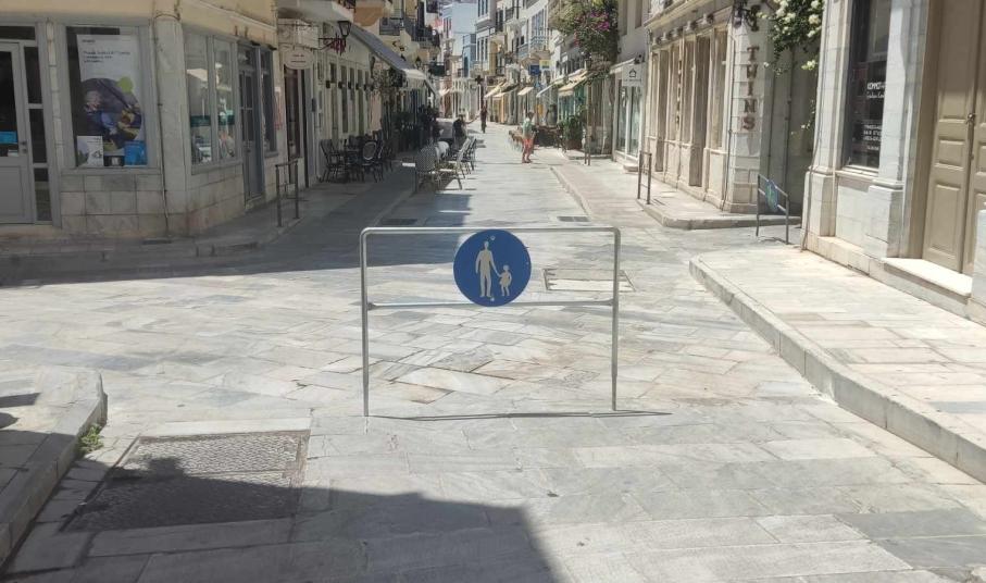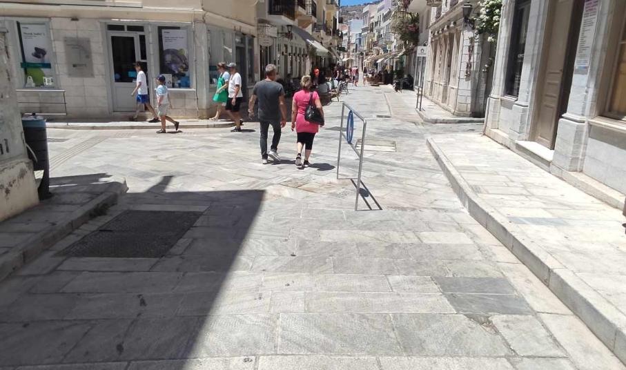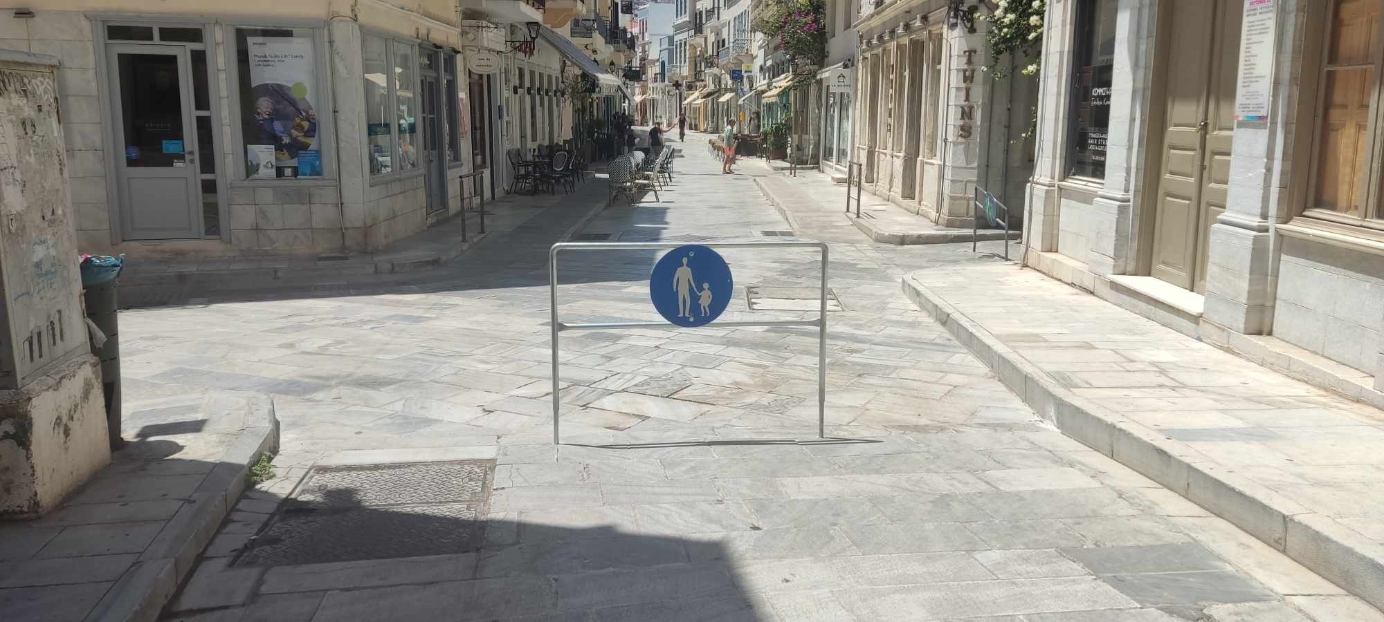 Στην τοποθέτηση μικρών απαγορευτικών μπαρών και σημάτων στον εμπορικό πεζόδρομο της Ερμούπολης προχώρησε η Δημοτική Αρχή, προκειμένου ο χώρος να μην παραβιάζεται από οδηγούς οχημάτων και μηχανών.