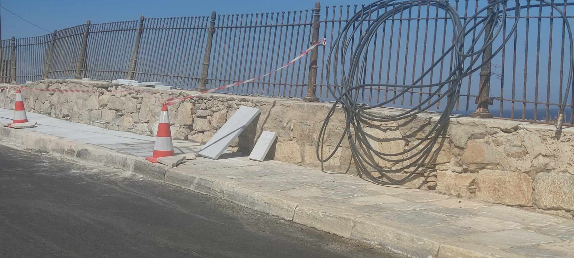Οι νέες πλάκες έχουν τοποθετηθεί ήδη στο ένα πεζοδρόμιο της πλευράς ανόδου, ενώ απομένουν οι σχετικές παρεμβάσεις και στο πεζοδρόμιο της αντίθετης ροής.