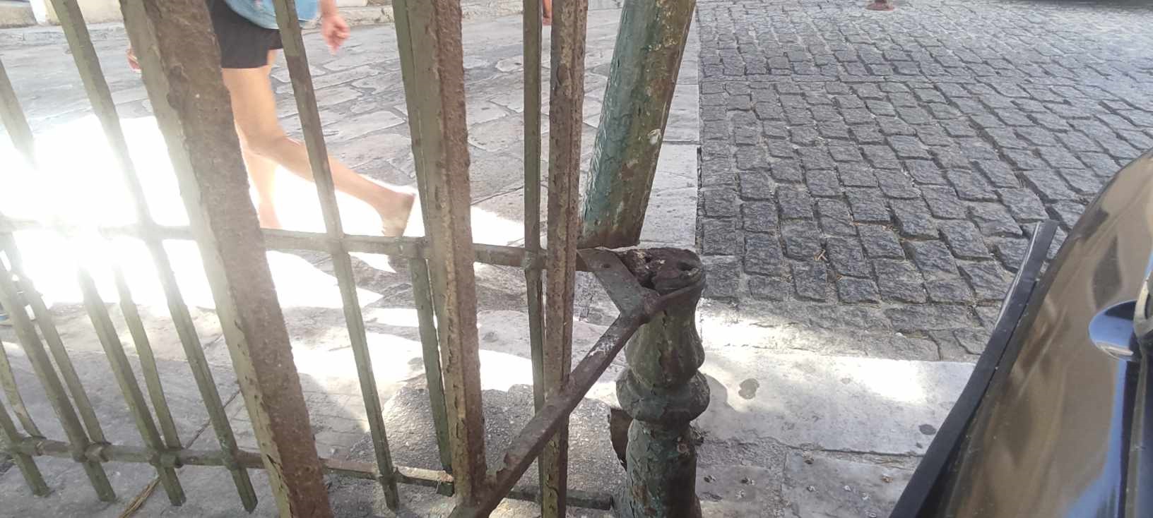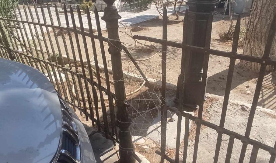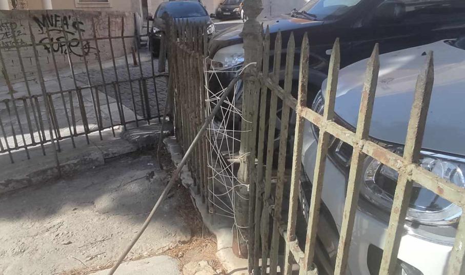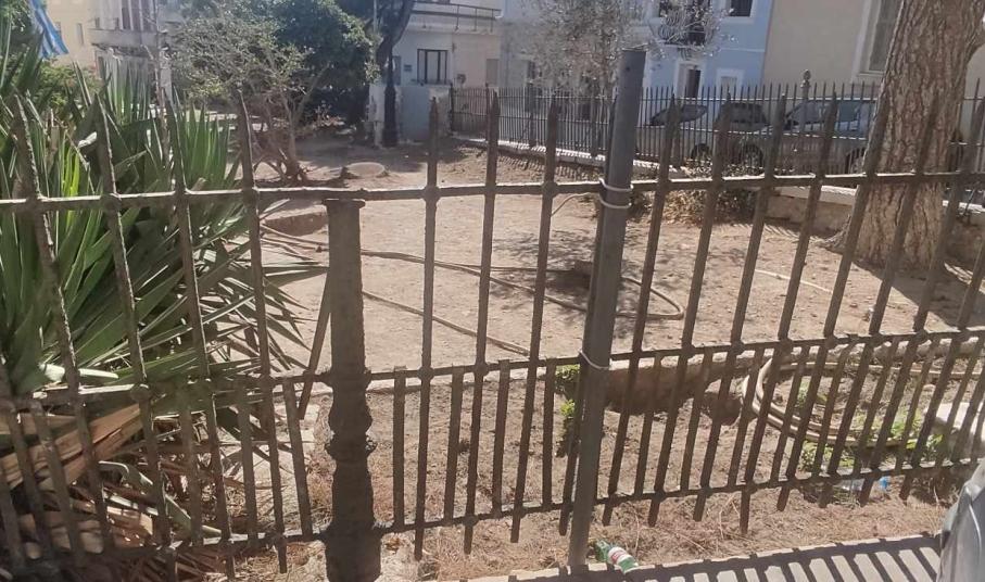 Θλίψη “γεννά” η εικόνα του κεντρικού κηπάριου της Ερμούπολης, λίγο πριν τη θέση Βαπόρια και συγκεκριμένα μπροστά από τον Ι.Ν. του Αγίου Νικολάου, καθώς η περίφραξή του, έχει υποχωρήσει ακόμη περισσότερο, συγκριτικά με το πρόσφατο παρελθόν.