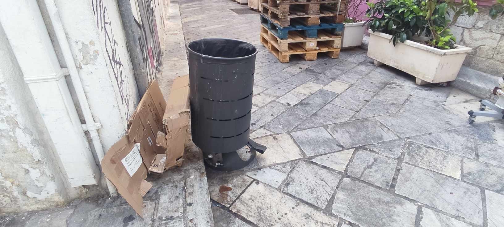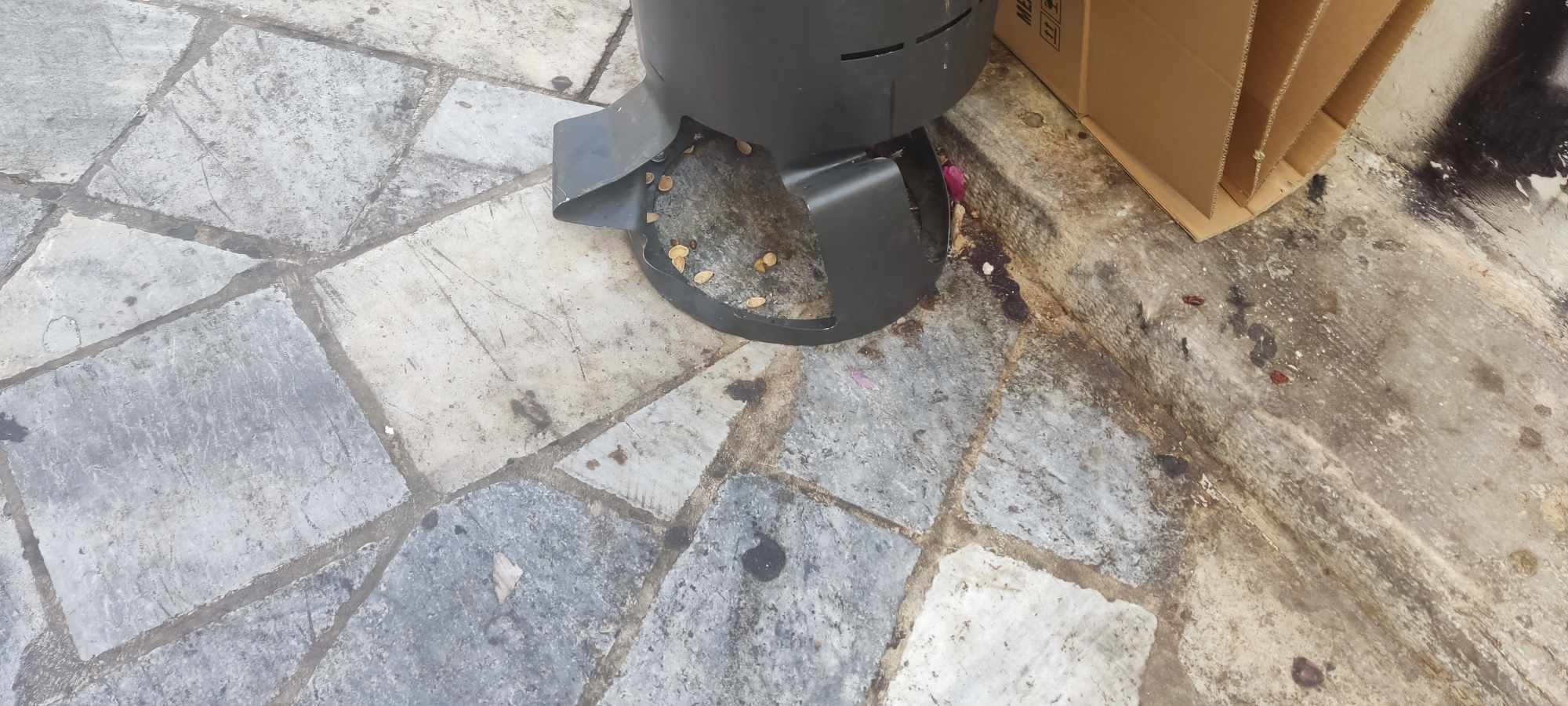 Θύμα της καταστροφικής… μανίας αγνώστων νέων “έπεσε” και ο καινούργιος εξοπλισμός για τα μικροαπορρίμματα στον πεζόδρομο και ειδικότερα, στην οδό Ανάφης, έξω από τις δημοτικές τουαλέτες.