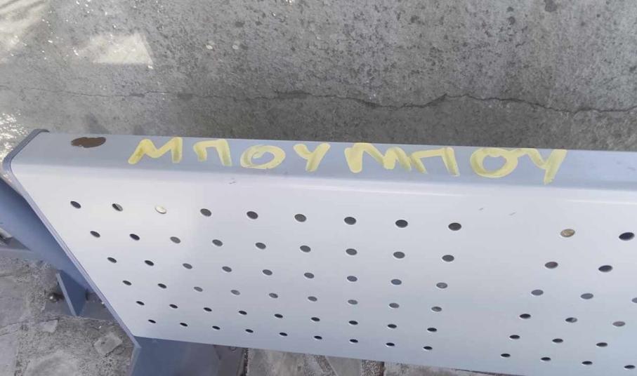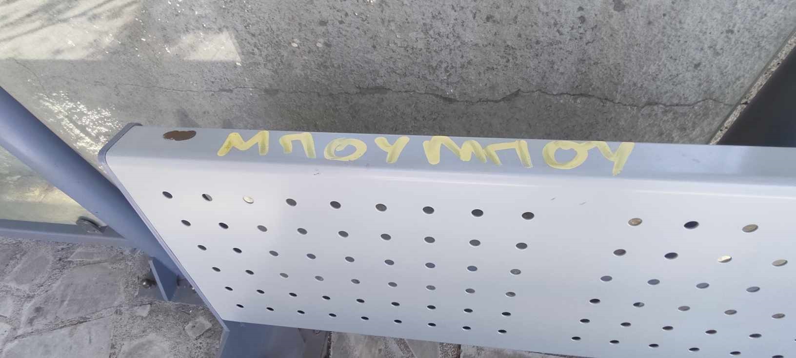 Ειδικότερα, στα παλαιά γκράφιτι που έκαναν ασυνείδητοι σε όλες τις επιφάνειές τους, σχεδόν εξ αρχής από τον χρόνο τοποθέτησής τους, ήρθαν να προστεθούν και νέα και μάλιστα, όχι μόνο στη βάση τους και στους πίνακες ανακοινώσεων, αλλά και στα καθίσματά τους.