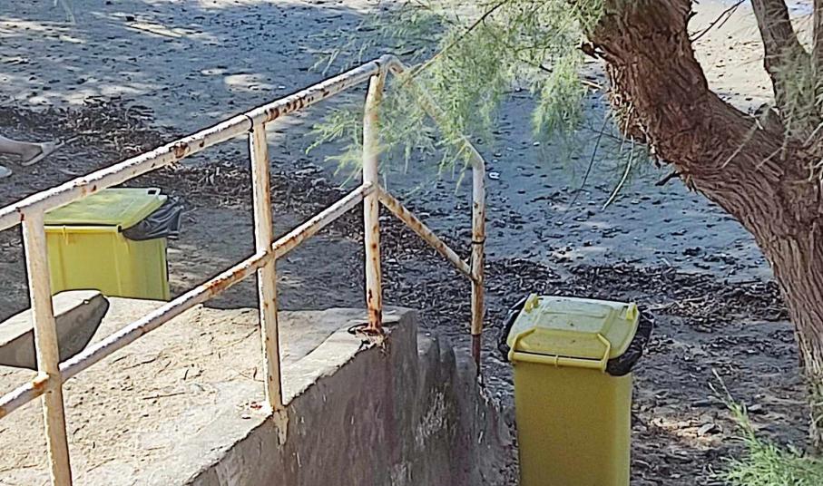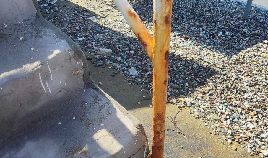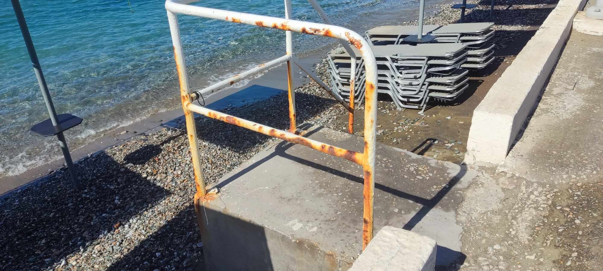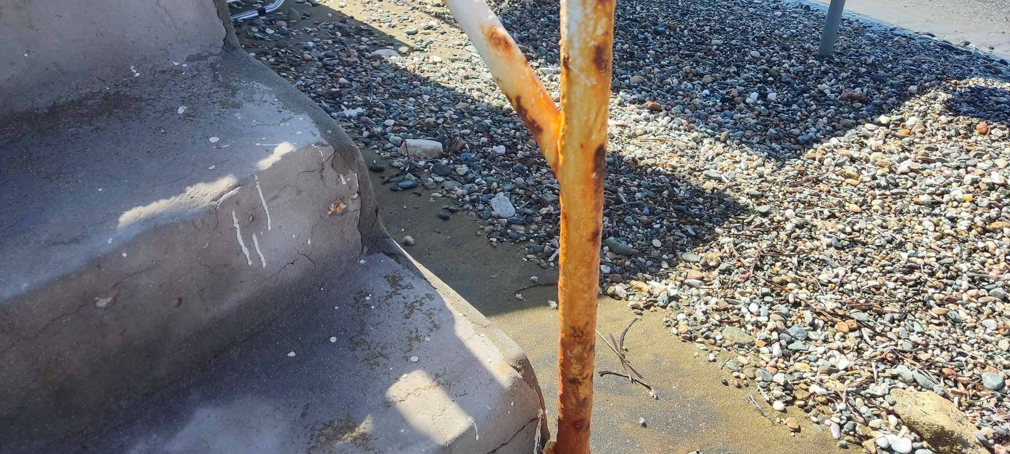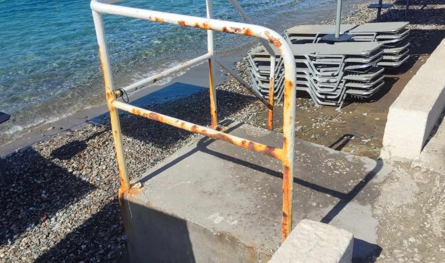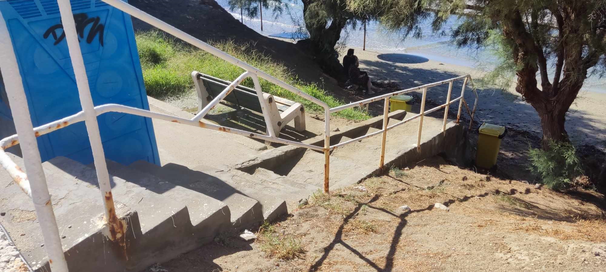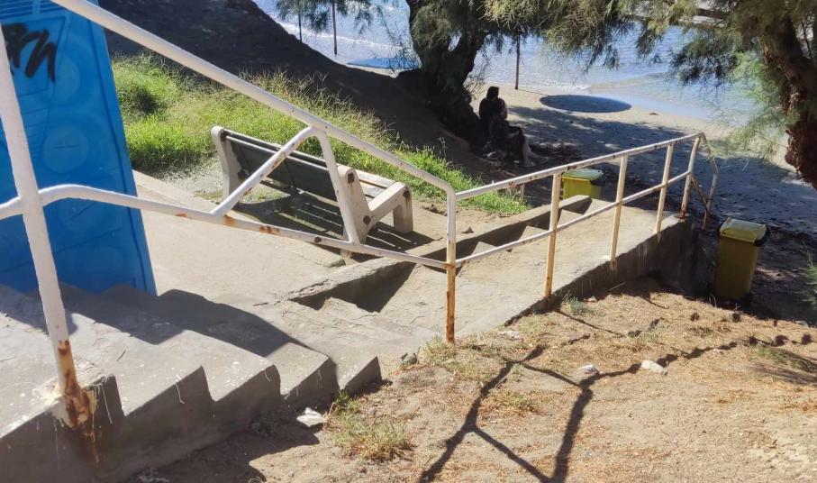 Σκουριασμένα είναι όλα τα κάγκελα στα σκαλοπάτια που οδηγούν στην παραλία του Φοίνικα, με τους αρμόδιους να μην έλαβαν καμία μέριμνα για αντικατάστασή τους, ή έστω για απαραίτητες συντηρήσεις.