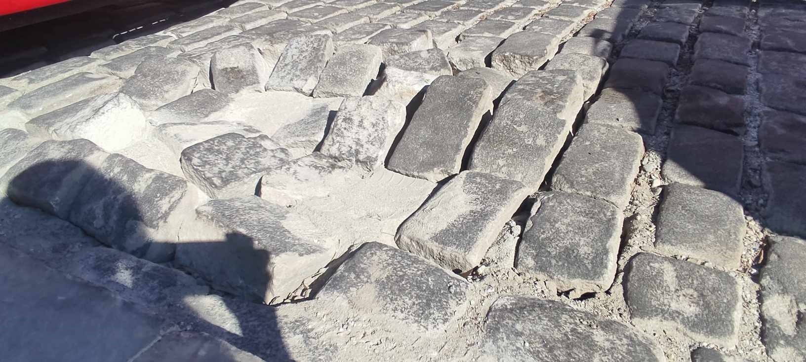 Συγκεκριμένα, ο γρανίτης δείχνει και είναι σε αρκετά τμήματα αποκολλημένος από τη βάση του δρόμου, με αποτέλεσμα να έχουν διαμορφωθεί κενά, ανομοιομορφίες και λακκούβες, που δυσχεραίνουν σοβαρά το βάδισμα των πεζών. Μάλιστα, τις βραδινές ώρες που δεν είναι ευδιάκριτα τα “διαλυμένα” τμήματα, δεν είναι λίγες οι φορές που πολίτες έχουν χάσει την ισορροπία τους και έχουν τραυματιστεί. Ωστόσο, επικινδυνότητα παρουσιάζεται και για τους οδηγούς μηχανών, αφού ορισμένες “πλάκες” έχουν σηκωθεί από τις βάσεις τους.