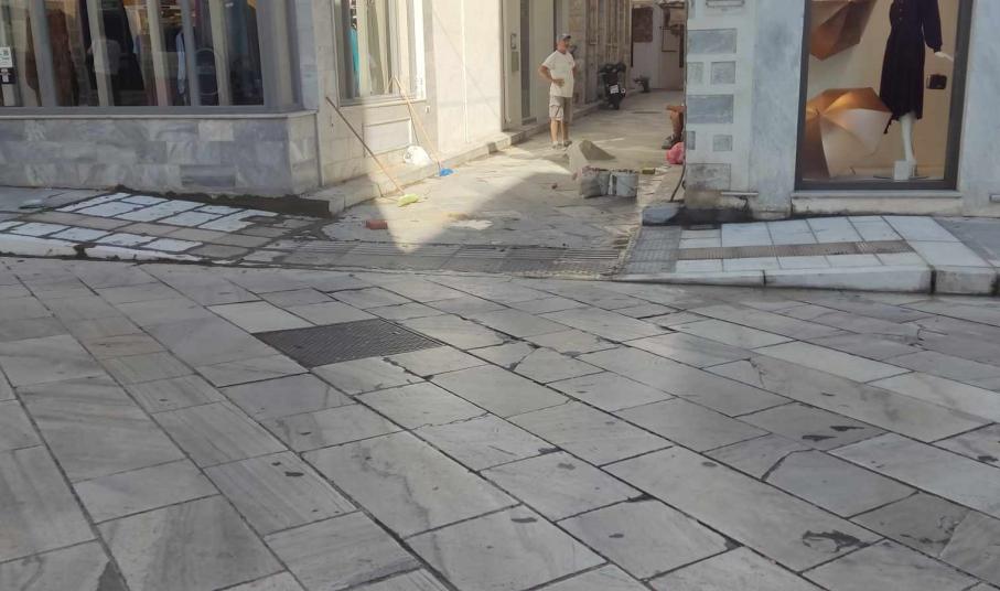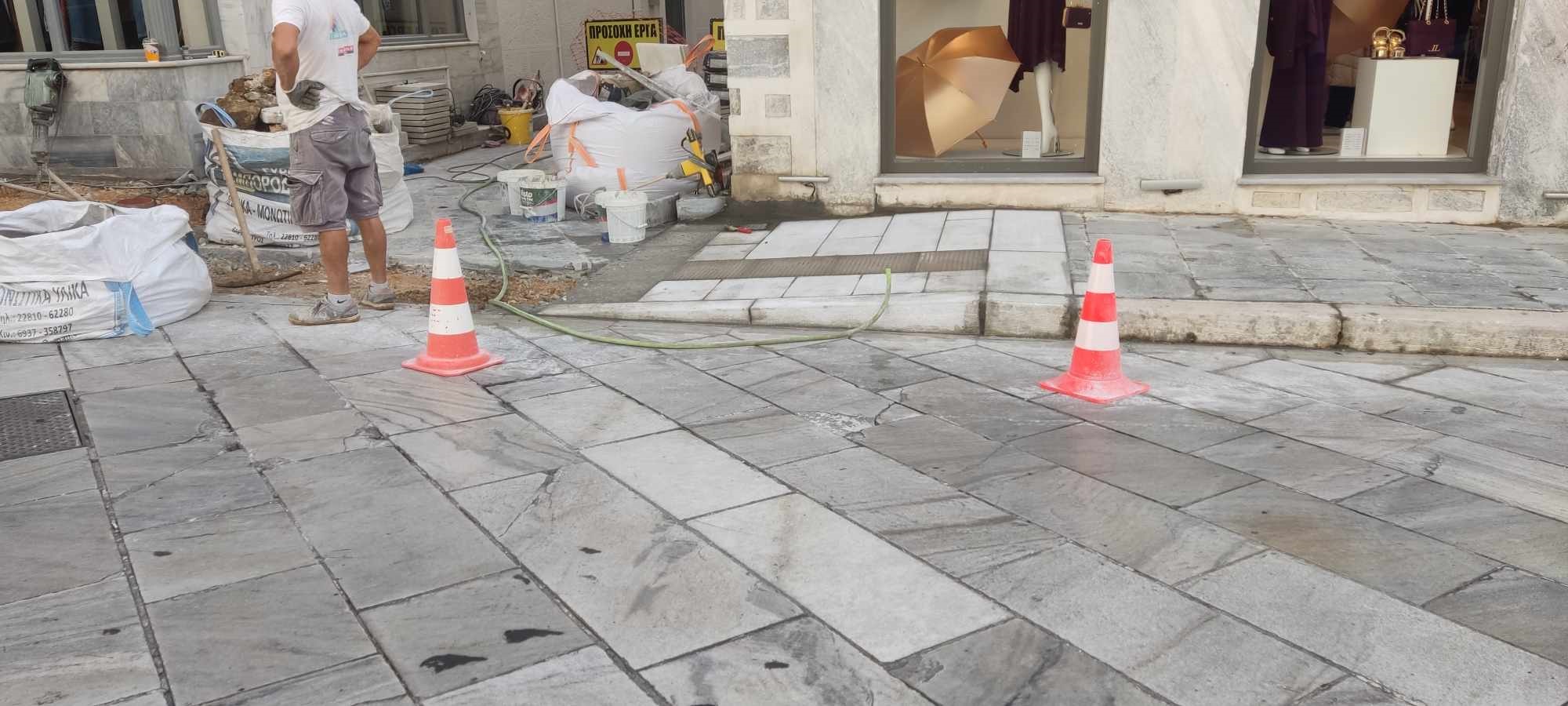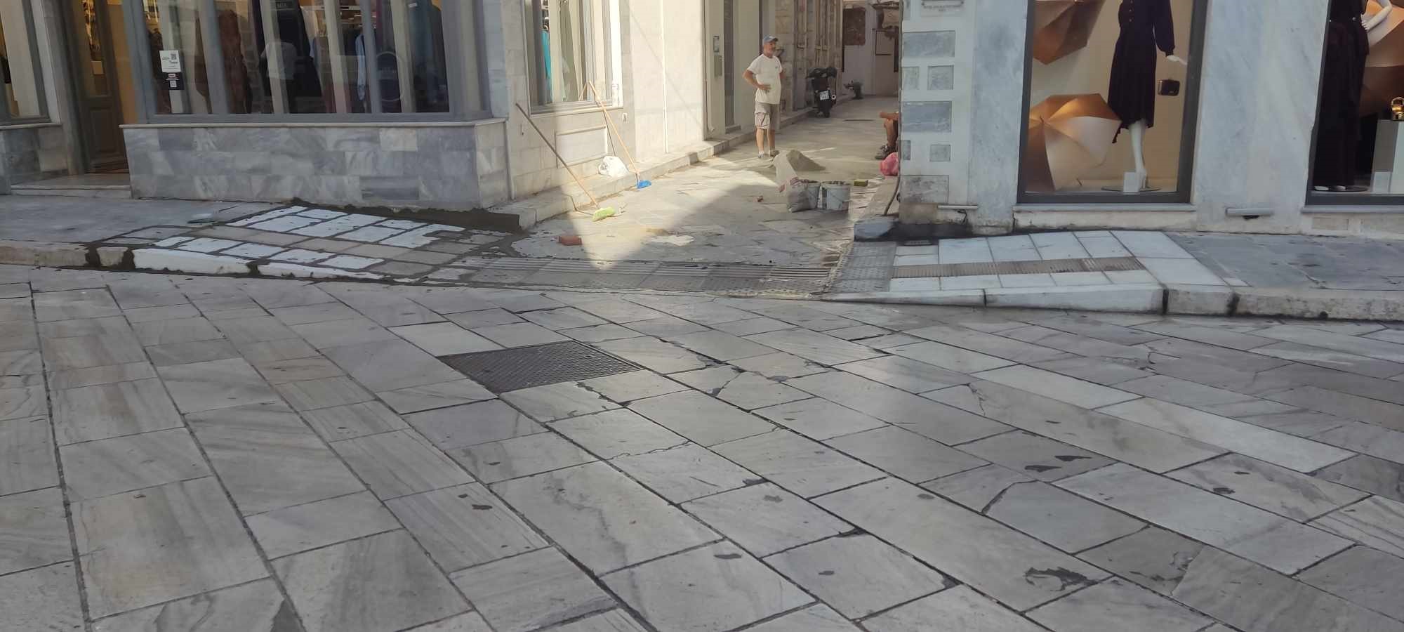 Σε όλη την έκταση των πεζοδρομίων της οδού Ελ. Βενιζέλου στην Ερμούπολη