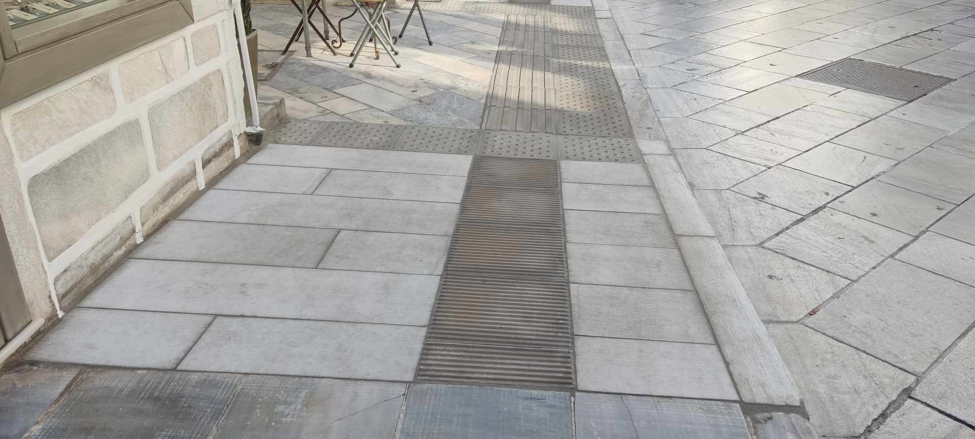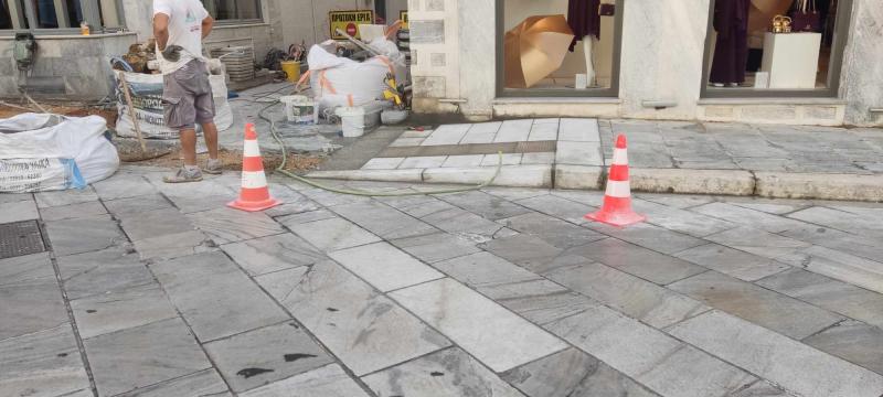 Συγκεκριμένα, οι εργασίες γίνονται με αυξημένη προσοχή και με όλα τα μέτρα για την ασφάλεια των διερχόμενων πολιτών (πεζών και οδηγών). Επί της ουσίας, γίνεται η ταπείνωση των μαρμάρων, για να υπάρχει η απαιτούμενη κλίση για την ομαλή μετακίνηση των αναπηρικών αμαξιδίων. Παράλληλα, τοποθετούνται και οι πλάκες για τους οδηγούς όδευσης για τα άτομα με προβλήματα όρασης.