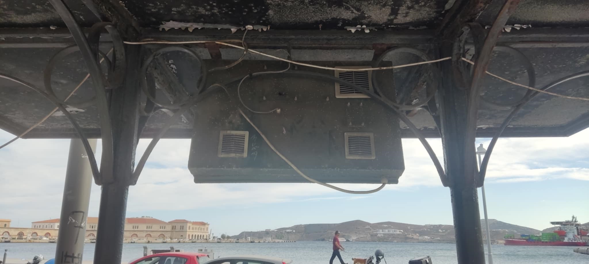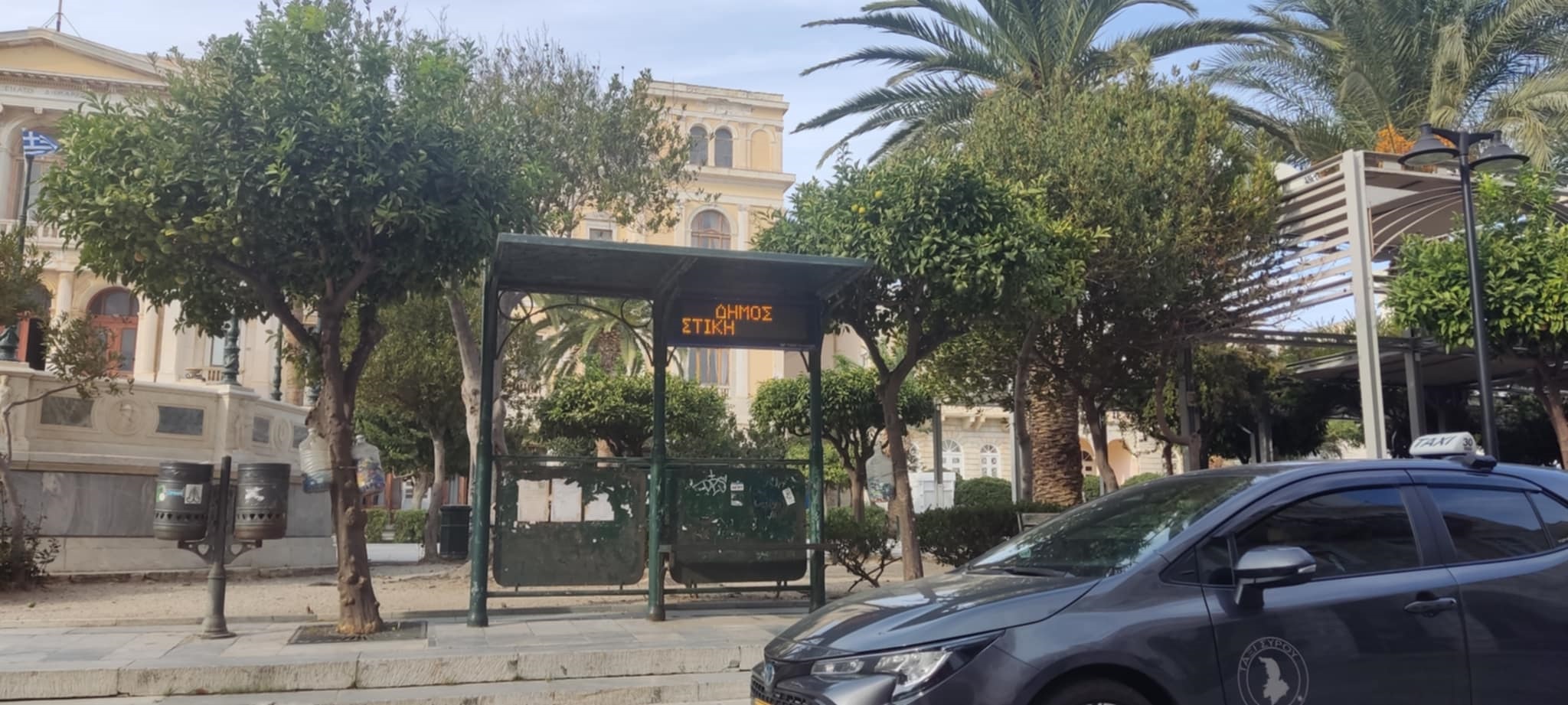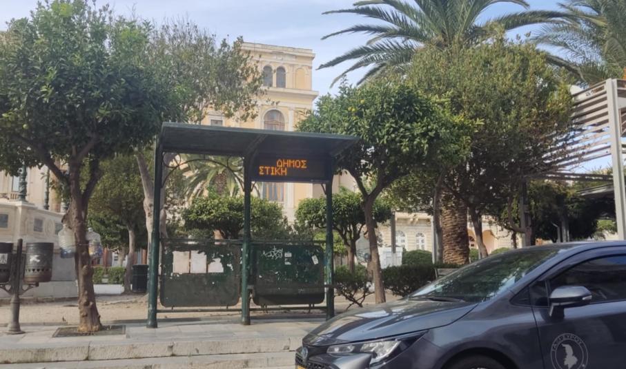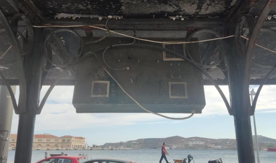 Μάλιστα, μία οθόνη στη στάση του παραλιακού μετώπου Ερμούπολης, δείχνει να έχει δεχθεί βανδαλισμό.