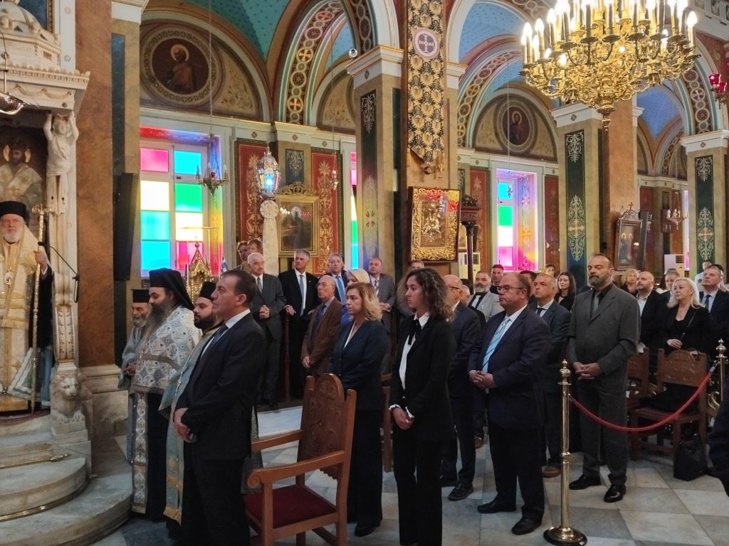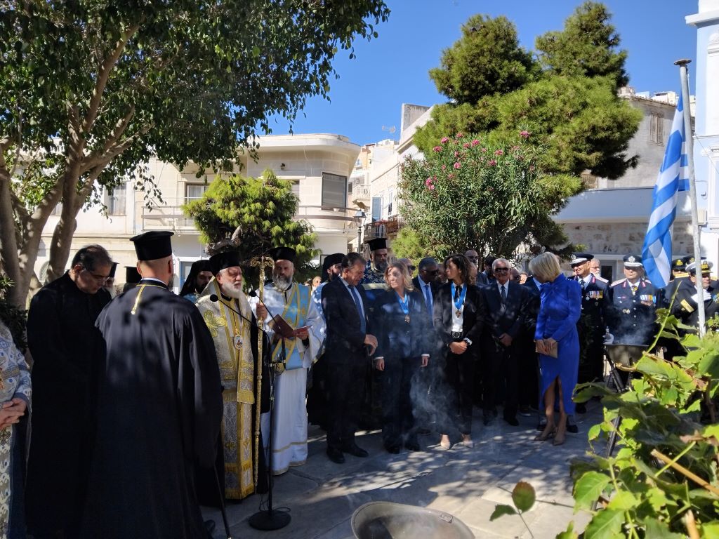 Νωρίς το πρωί, ανήμερα του εορτασμού της εθνικής επετείου του "ΟΧΙ", που μνημονεύει την άρνηση της Ελλάδας στις ιταλικές αξιώσεις, από τον Ιωάννη Μεταξά την 28η Οκτωβρίου του 1940, τελέστηκε στον ιερό ναό του Αγίου Νικολάου Ερμούπολης, η επίσημη δοξολογία από τον μητροπολίτη Σύρου, Δωρόθεο Β΄, με τη συμμετοχή εκπροσώπων της καθολικής εκκλησίας, του Γιάννη Βρούτση ως εκπρόσωπου της κυβέρνησης, της βουλευτή Κυκλάδων, Κατερίνας Μονγυιού, του συνόλου της αυτοδιοίκησης α' και β' βαθμού της Σύρου, των φορέων και των Συλλόγων, του Στρατού και των Σωμάτων Ασφαλείας, αντιπροσωπειών από σχολεία της Σύρου, αλλά και του ιερού κλήρου του νησιού.