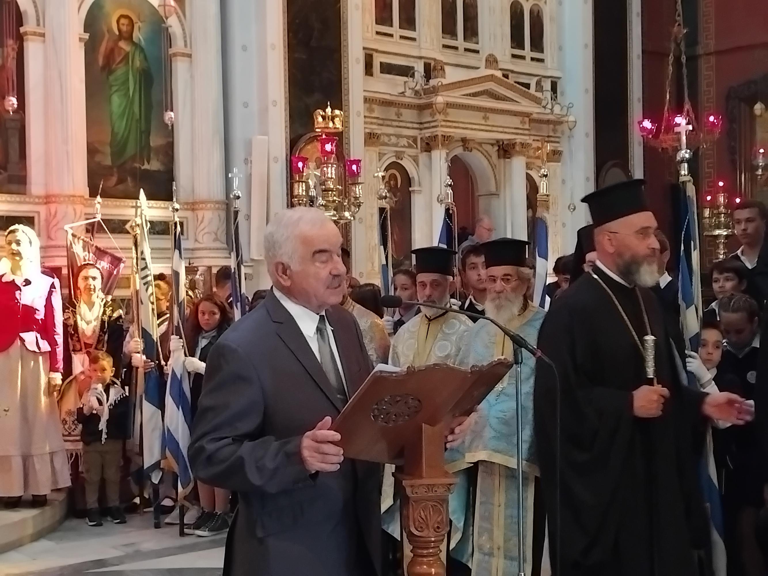 Εμφανώς συγκινημένος και στρέφοντας το βλέμμα προς τους παρευρισκομένους, ο αντιπεριφερειάρχης τόνισε ότι "η 28η Οκτωβρίου 1940 συμβολίζει την άρνηση στον ολοκληρωτισμό, την αντίσταση στην τυραννία, την κατάφαση στην ελευθερία και την εθνική αξιοπρέπεια και γι' αυτόν τον λόγο είναι πάντα επίκαιρη και παιδευτικά αναγκαία στις νεότερες, στις γενιές του σήμερα και του αύριο, που έχουν την τύχη να μη γνωρίσουν τη φρίκη του πολέμου που έζησαν οι μεγαλύτεροι και που αξίζει να ζουν σε μία Ελλάδα ισχυρή, δημοκρατική και πολιτισμένη".