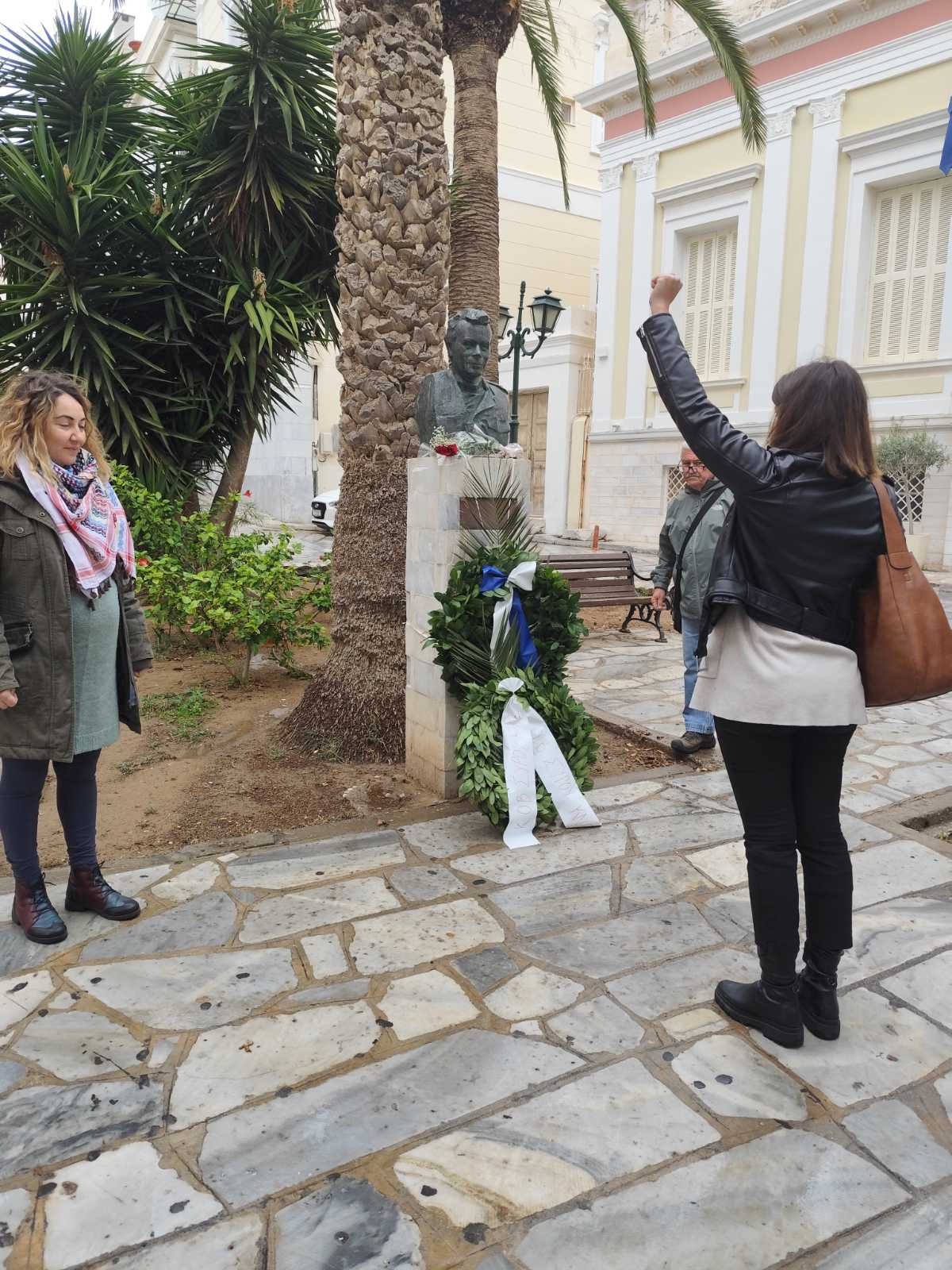 Κατά τη χθεσινή επέτειο του Πολυτεχνείου μέλη και φίλοι της ΚΟΒ Σύρου του ΚΚΕ και της ΟΒ Σύρου της ΚΝΕ πραγματοποίησαν κατάθεση στεφάνου στο μνημείο του Σπύρου Μουστακλή, στην πλατεία Τσιροπινά.