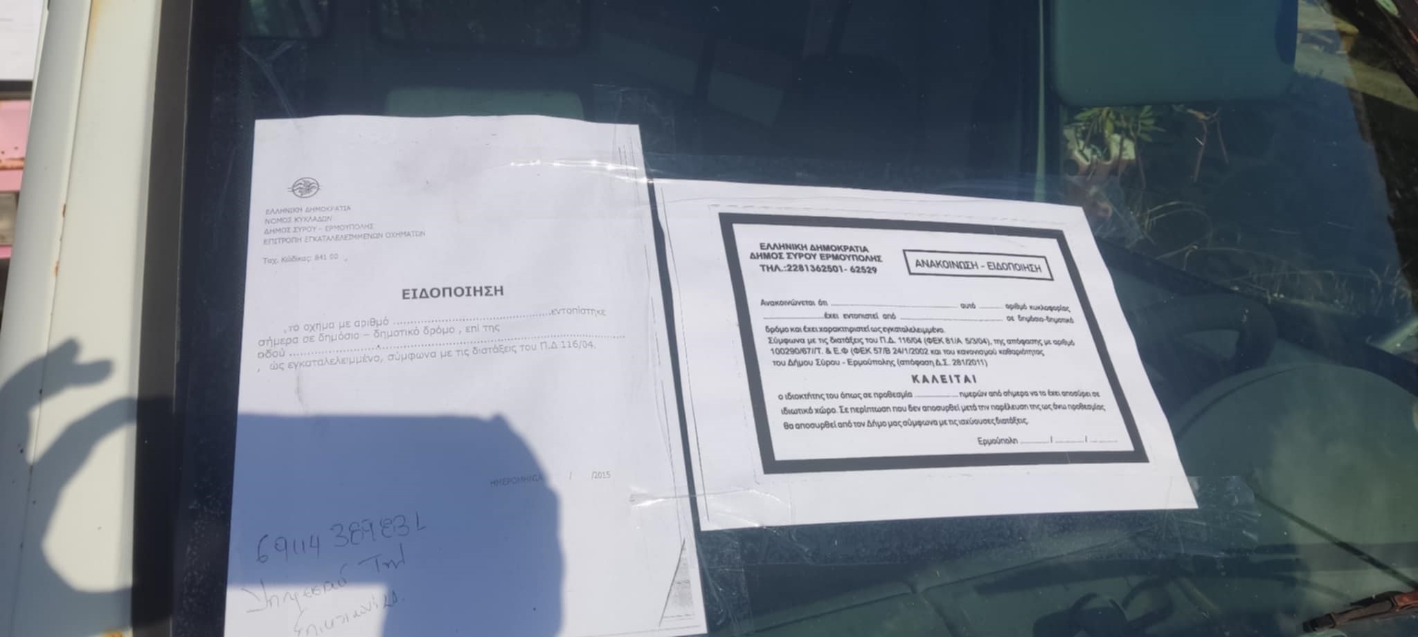 Ειδικότερα, χθες, αρμόδιοι υπάλληλοι του Δήμου, υπό την καθοδήγηση του αντιδημάρχου, Νίκου Σκευοφύλακα, προχώρησαν στην ανάρτηση νέων ειδοποιητηρίων στα παρμπρίζ των εγκαταλελειμμένων οχημάτων στην περιοχή του Μάννα, ενώ αμέσως μετά, ακολούθησε η περιοχή της Αζολίμνου και σήμερα, βρίσκονται στην Άνω Σύρο για ανάλογη δουλειά.