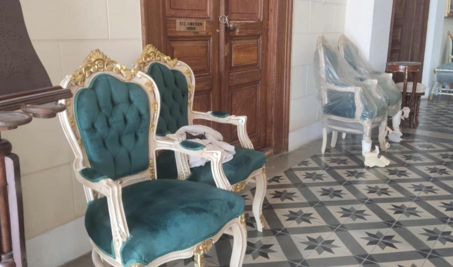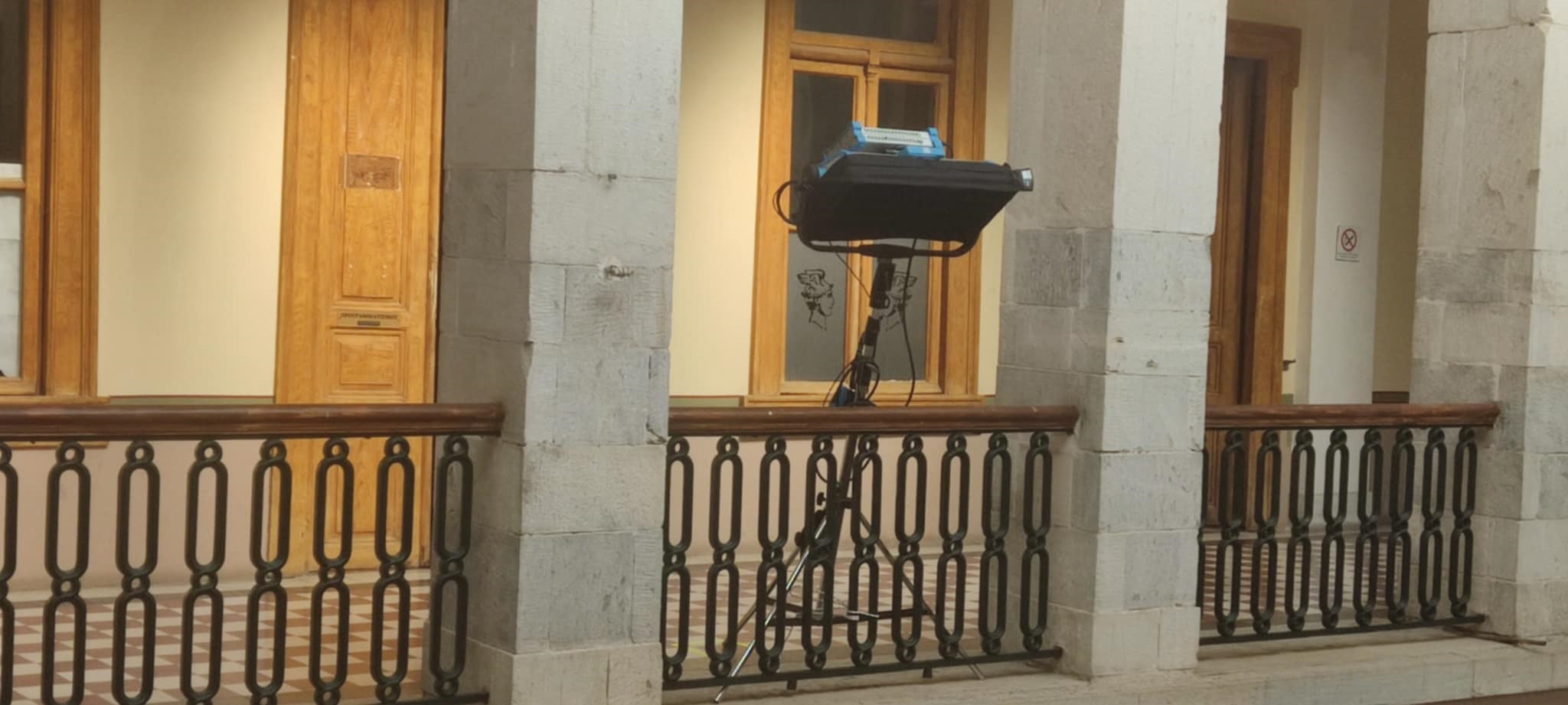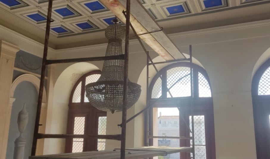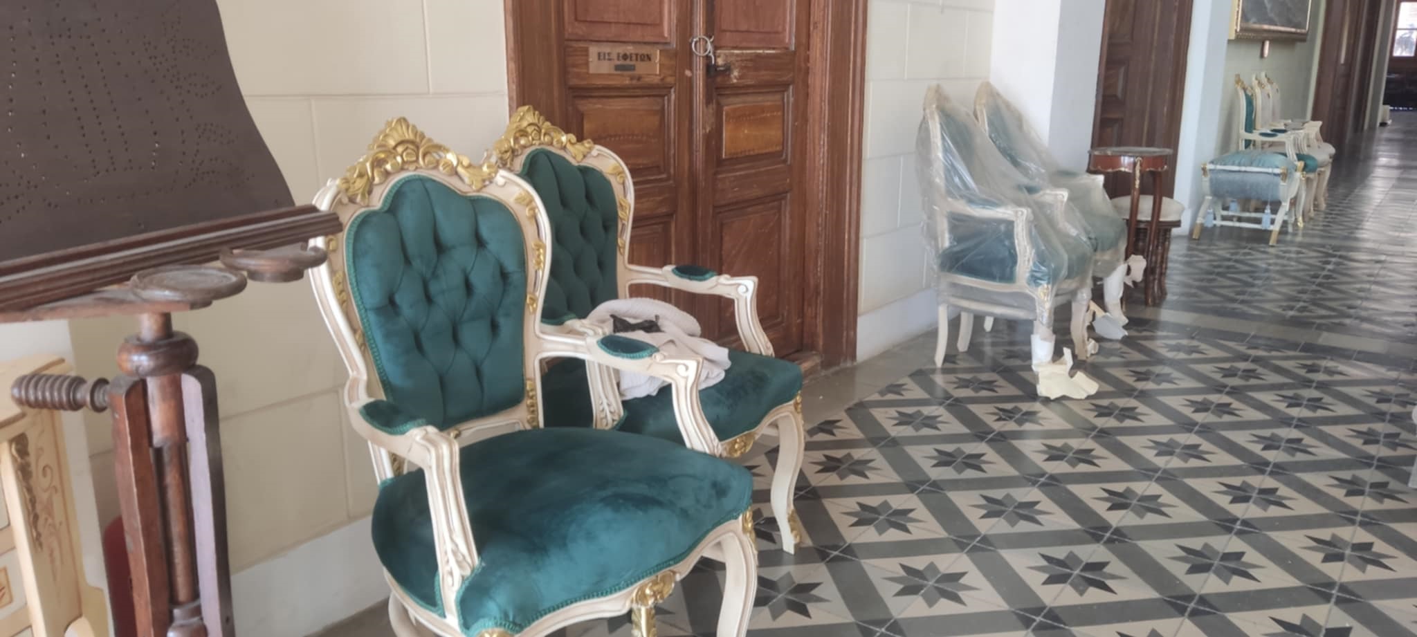 Ένα υπέροχο σκηνικό διαμορφώνεται στον πρώτο όροφο του Δημαρχιακού Μεγάρου Σύρου, που μεταφέρει όλους στην Ερμούπολη του 1930, στο πλαίσιο των γυρισμάτων της “Μεγάλης Χίμαιρας”.