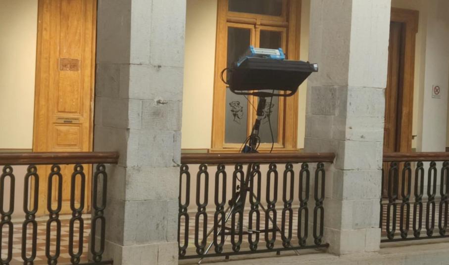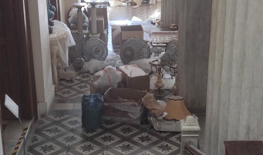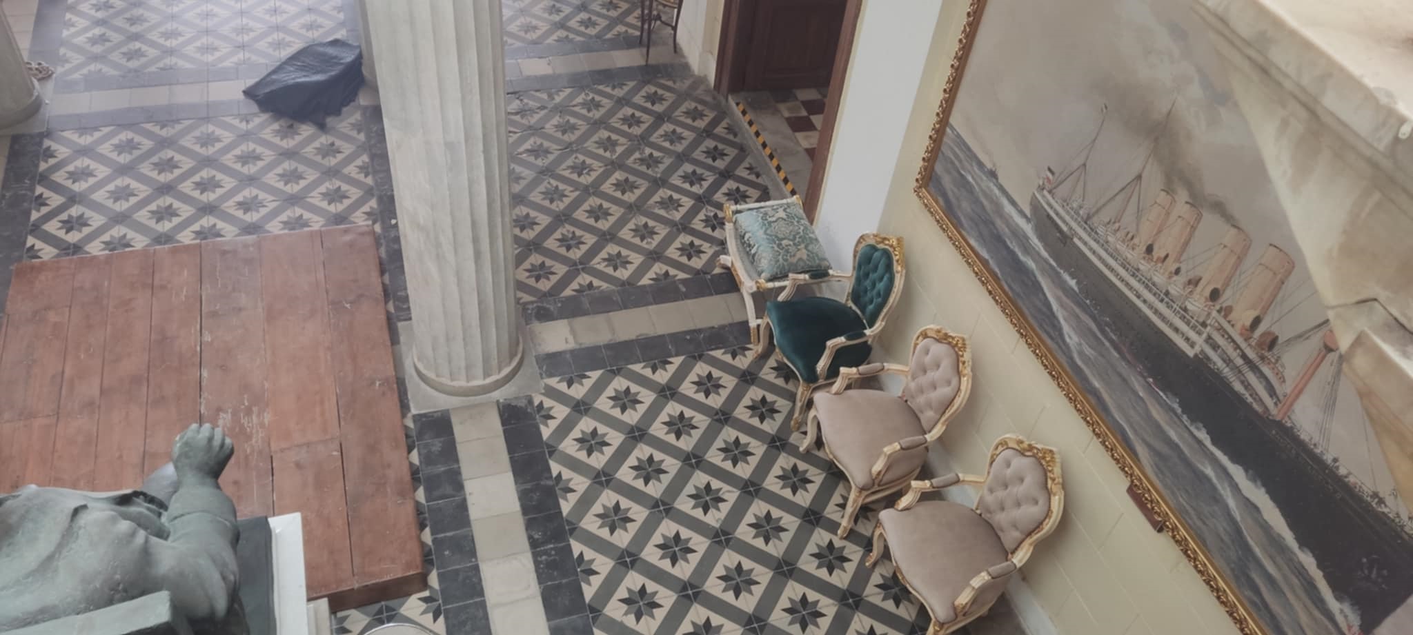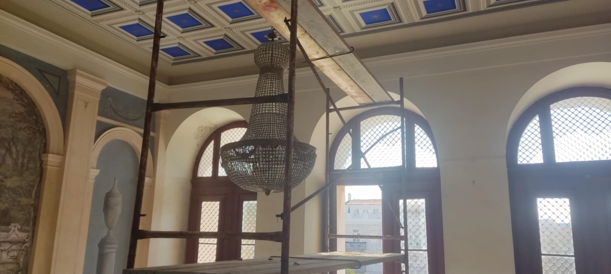 Ένα υπέροχο σκηνικό διαμορφώνεται στον πρώτο όροφο του Δημαρχιακού Μεγάρου Σύρου, που μεταφέρει όλους στην Ερμούπολη του 1930, στο πλαίσιο των γυρισμάτων της “Μεγάλης Χίμαιρας”.