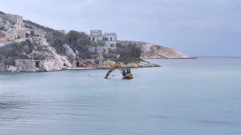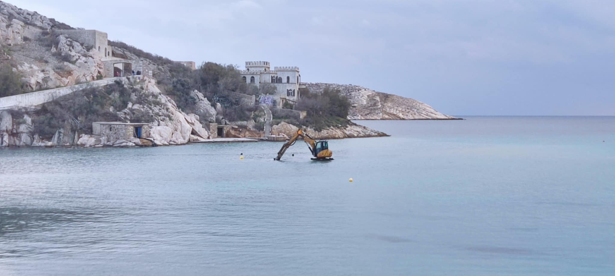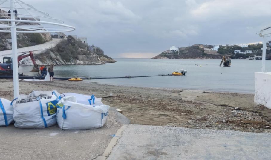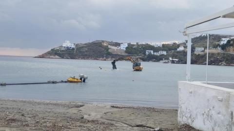 Όπως διαπιστώνει ο κάθε αναγνώστης από το σχετικό φωτογραφικό υλικό, οι εργασίες προχωρούν ιδιαιτέρως εντατικά, με τα μηχανήματα έργου να έχουν σκάψει τόσο το τμήμα της αμμουδιάς, όσο και ένα μέρος υποθαλάσσια, για να τοποθετηθεί ο αγωγός.